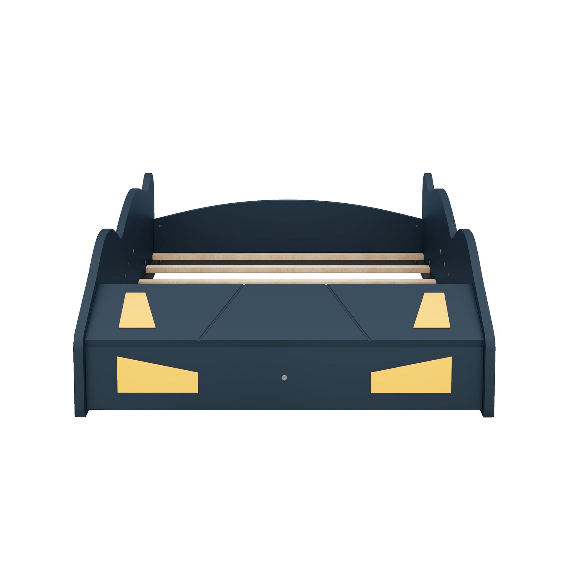 Race Car Shaped Twin Platform Bed With Wheels And Storage - Dark Blue