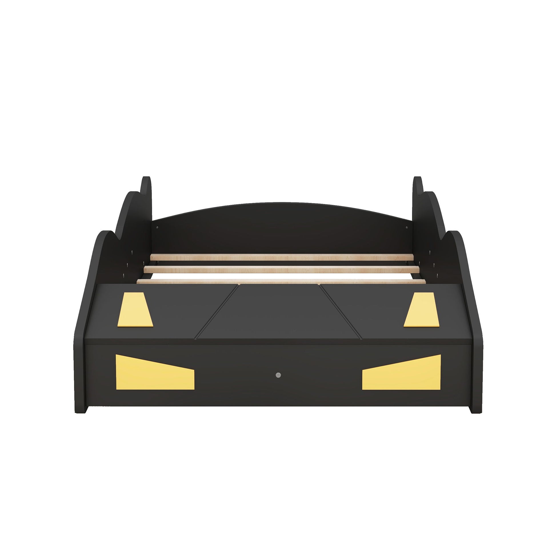 Race Car Shaped Twin Platform Bed With Wheels And Storage - Black