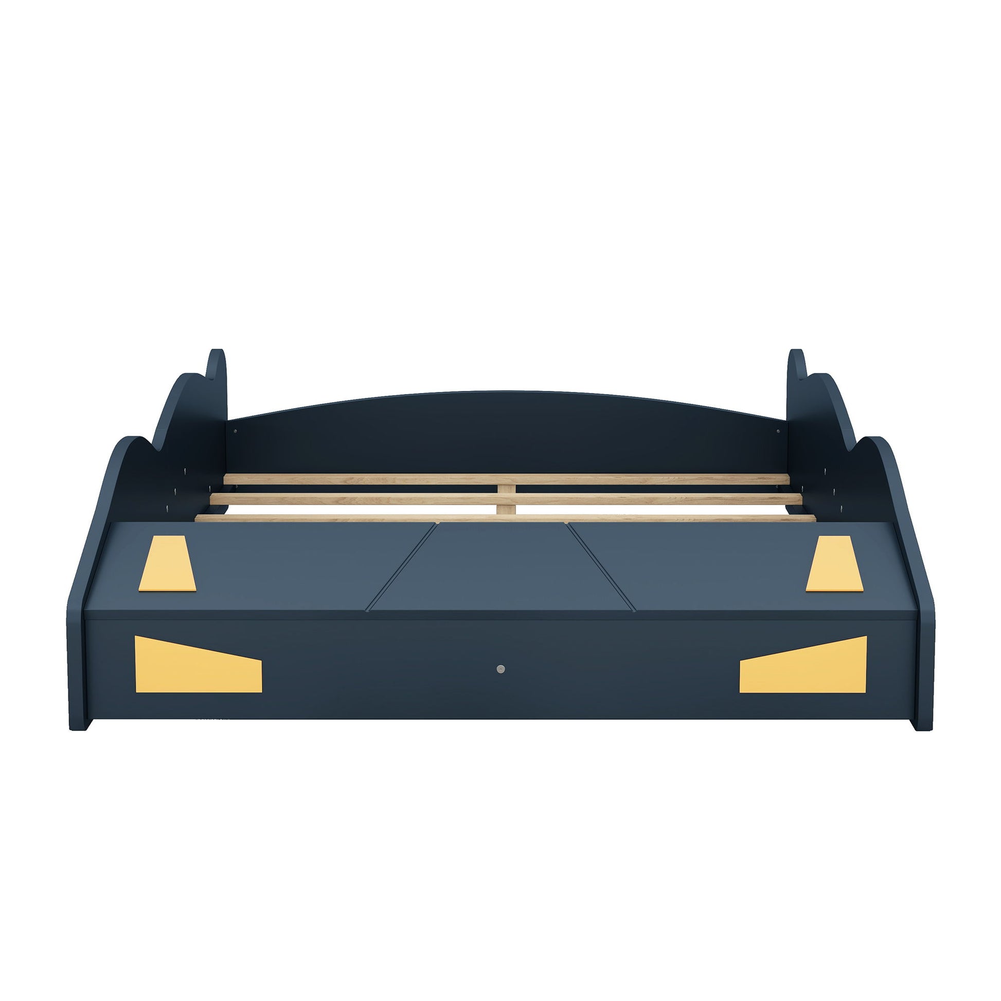 Race Car Shaped Full Size Platform Bed With Wheels And Storage - Dark Blue