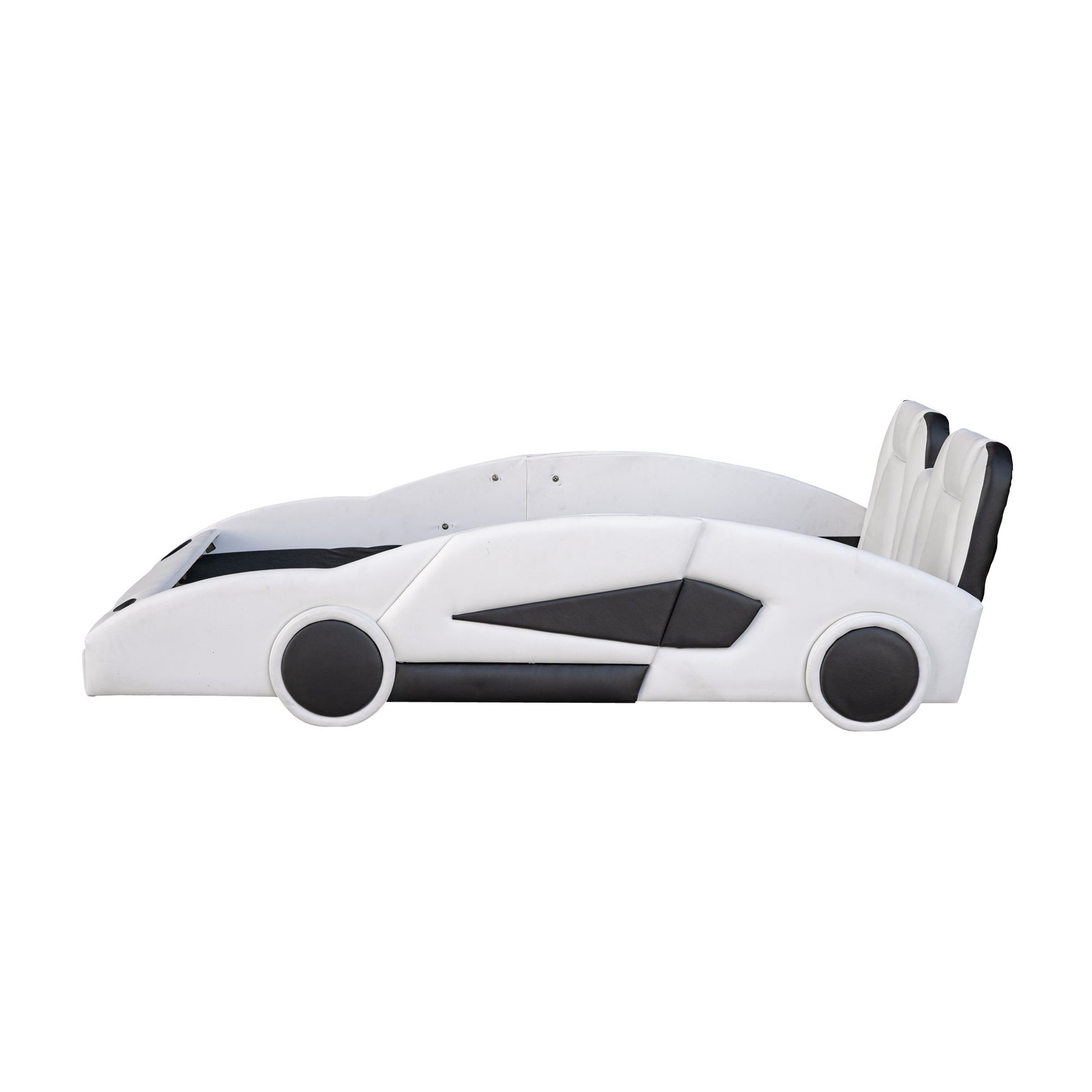 Race Car Shaped Twin Platform Bed With Wheels - White