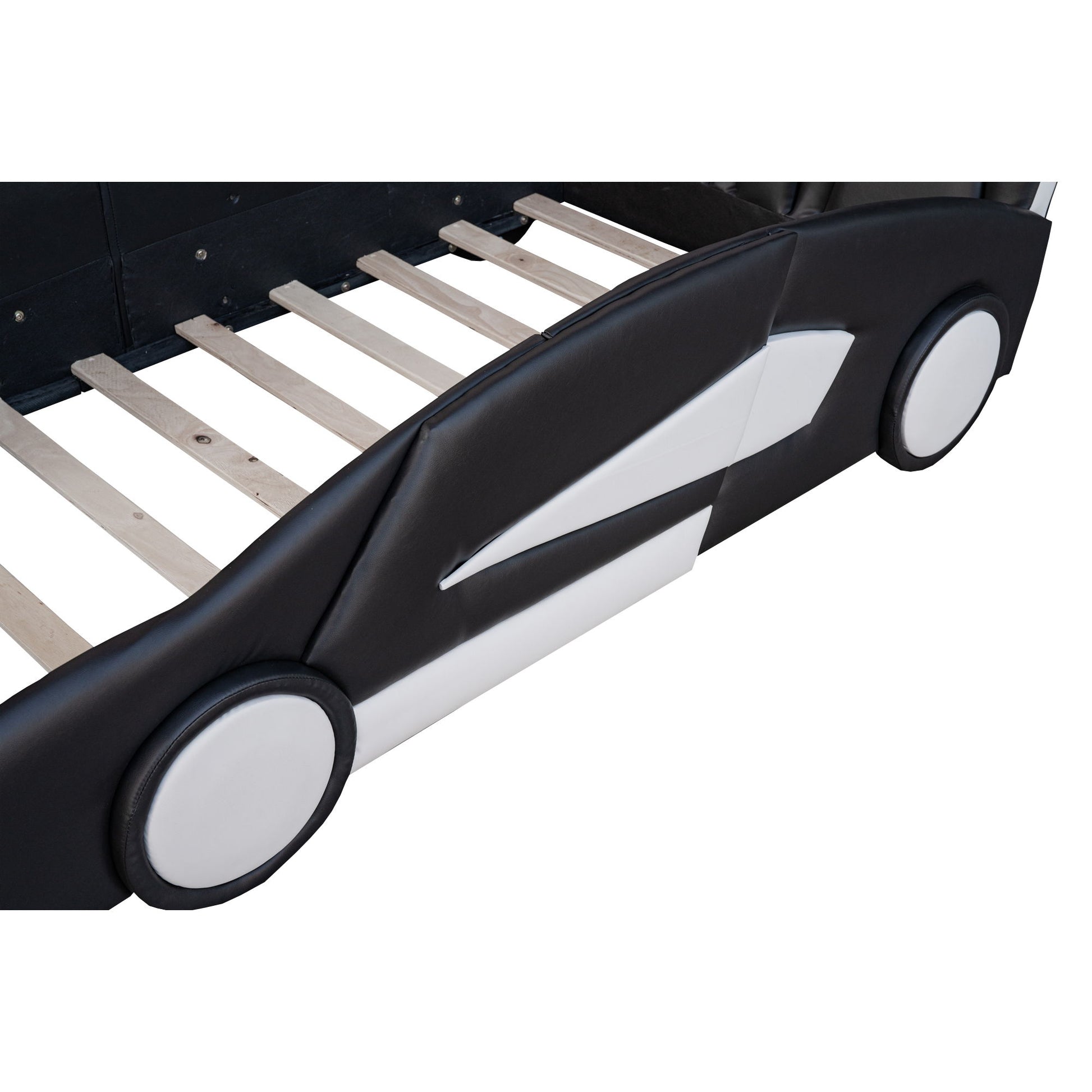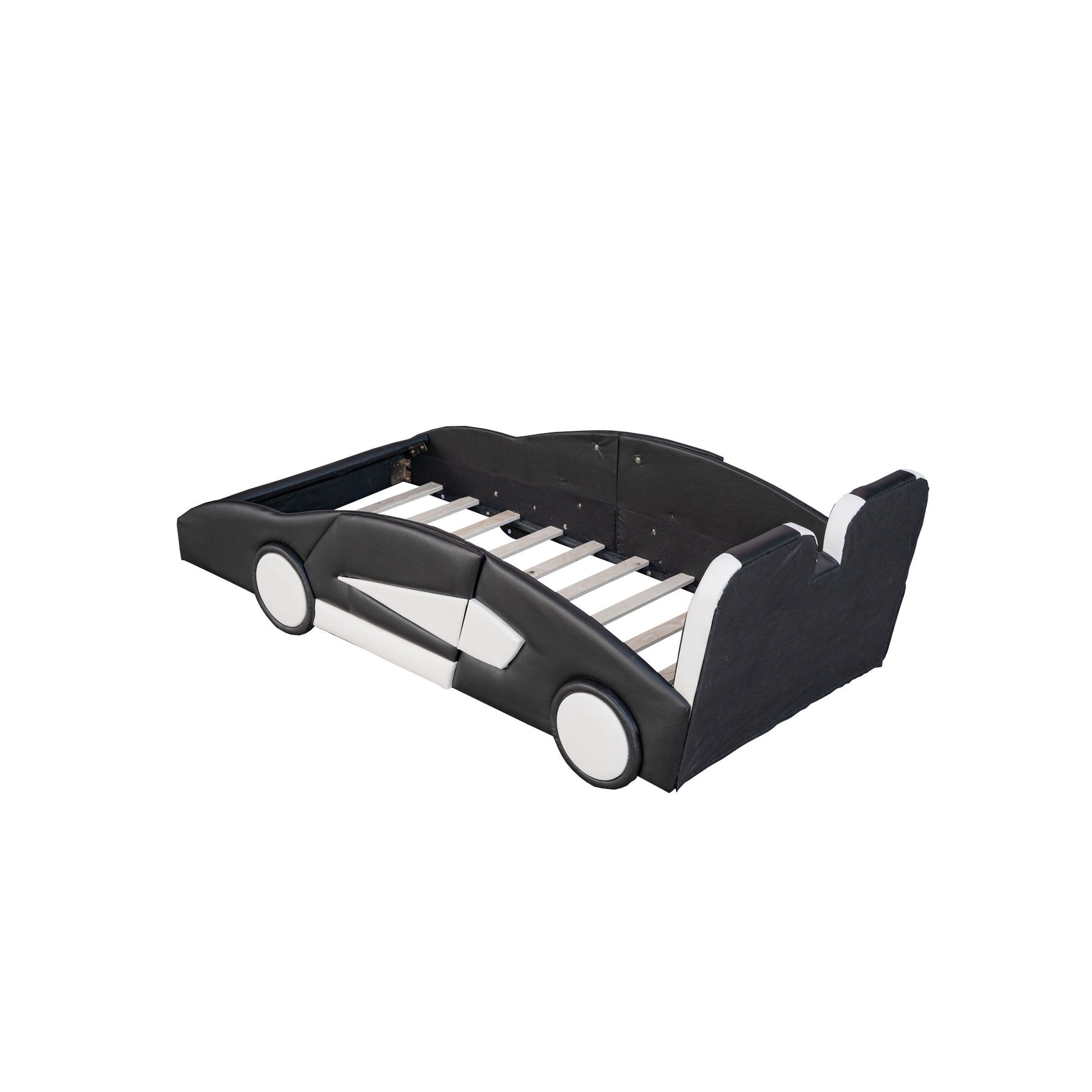 Race Car Shaped Twin Platform Bed With Wheels - Black