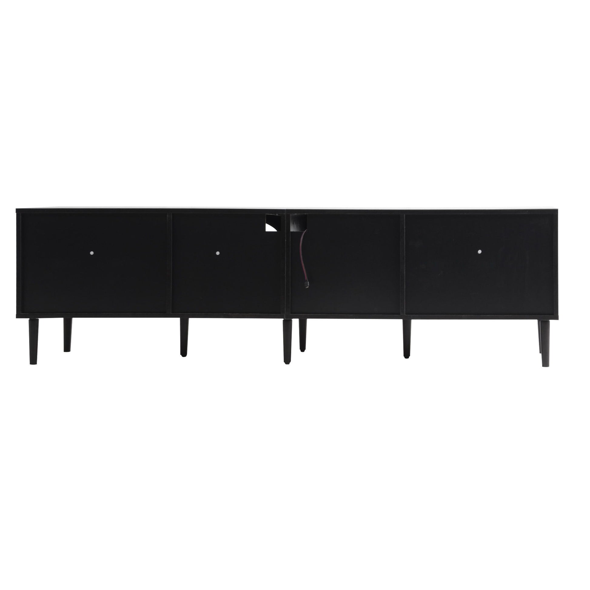 Rattan TV Stand With 3 Cabinets & 2 Drawers, Rattan-Inspired Media Console Table For Tvs Up To 80'', LED Light Entertainment Center, TV Cabinet For Living Room - Black