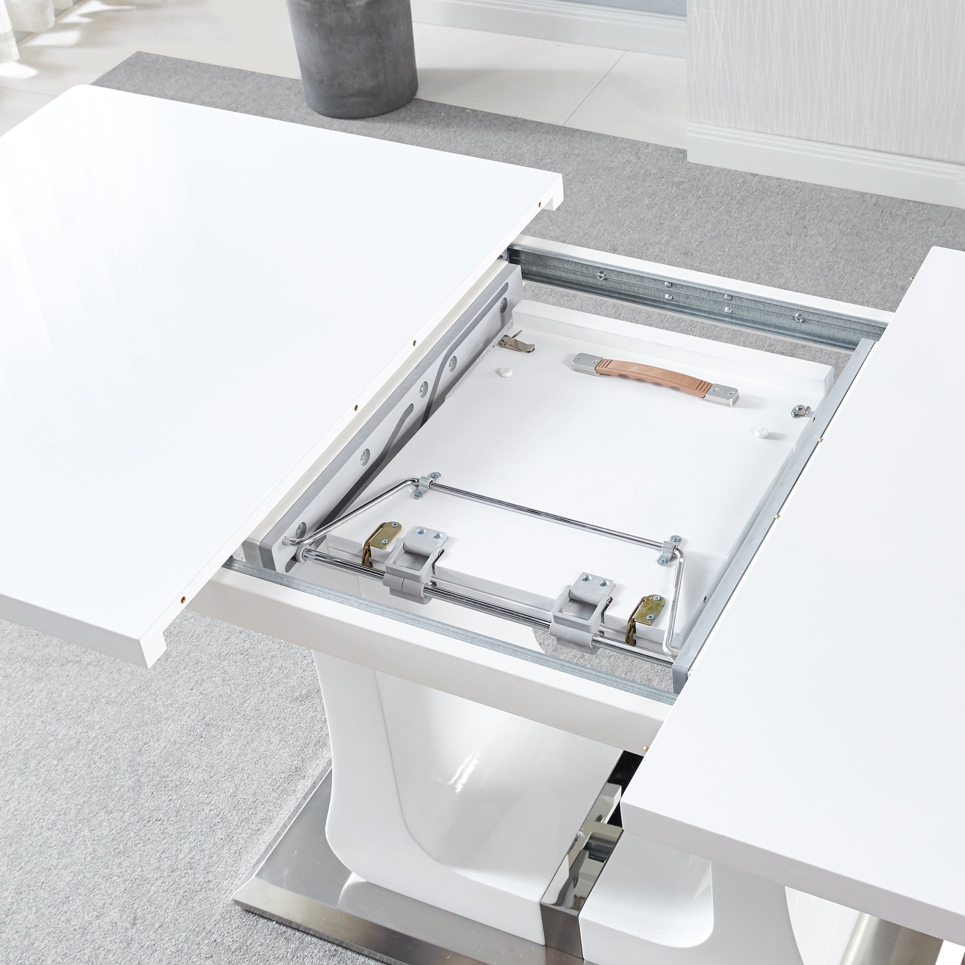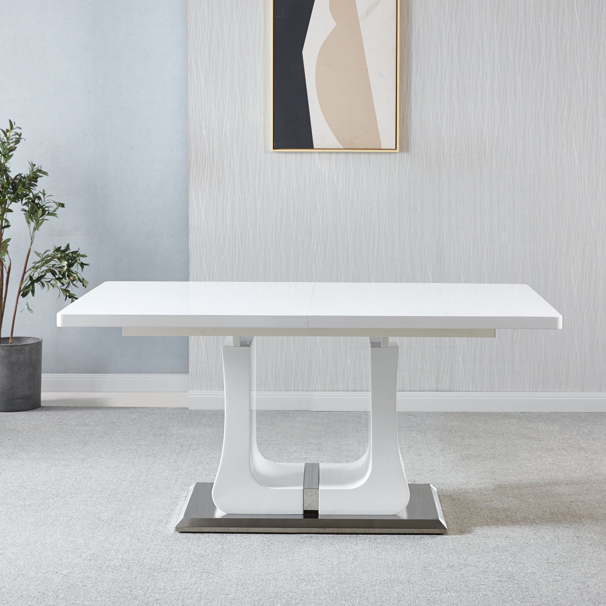 Elevate your dining experience with the Expandable Butterfly Dining Table, a stylish and functional addition to any modern home. Featuring a sleek tempered glass top, sturdy stainless steel legs, and a high-quality MDF base finished in white lacquer, this table is designed for both beauty and durability. The innovative butterfly extension mechanism allows you to easily expand the table from 63" to 78.7" in length, offering ample space for hosting gatherings or family dinners. With a modern design and versatile size, this table perfectly complements a variety of interior styles. Assembly is required, but the result is a stunning centerpiece that will transform your dining space