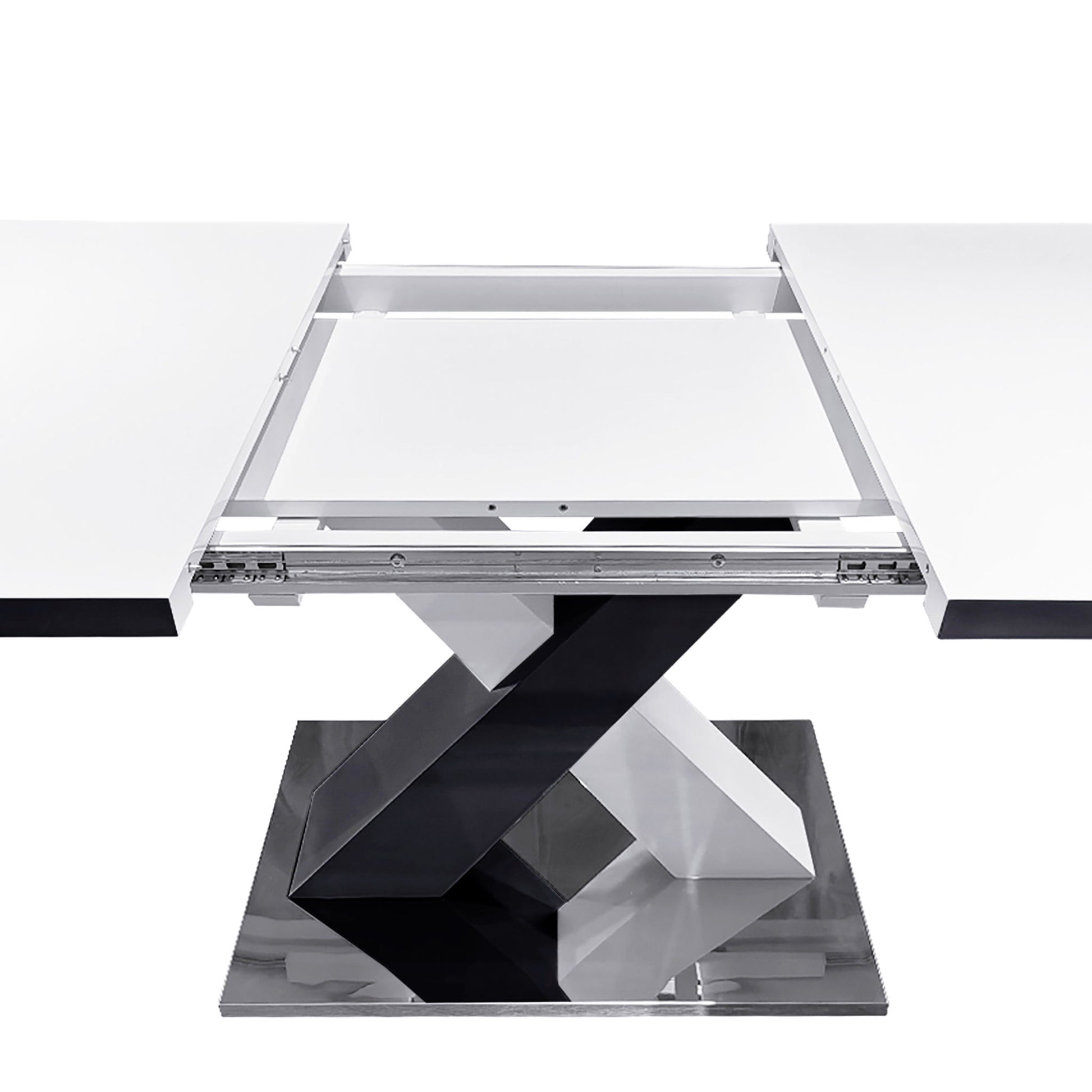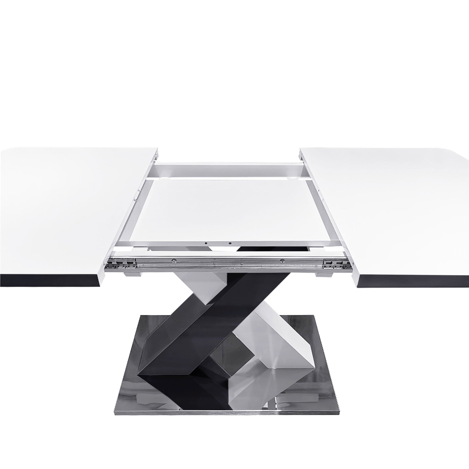 Rectangle Dining Table, Stretchable, Table Top With X Shape And Legs And Base - White / Black