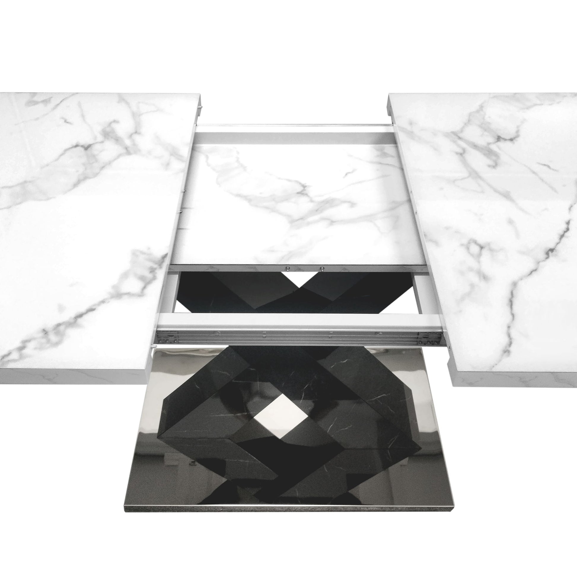 Rectangle Dining Table With Stretchable Top, X Shape Mdf Legs With Steel Base - White / Black