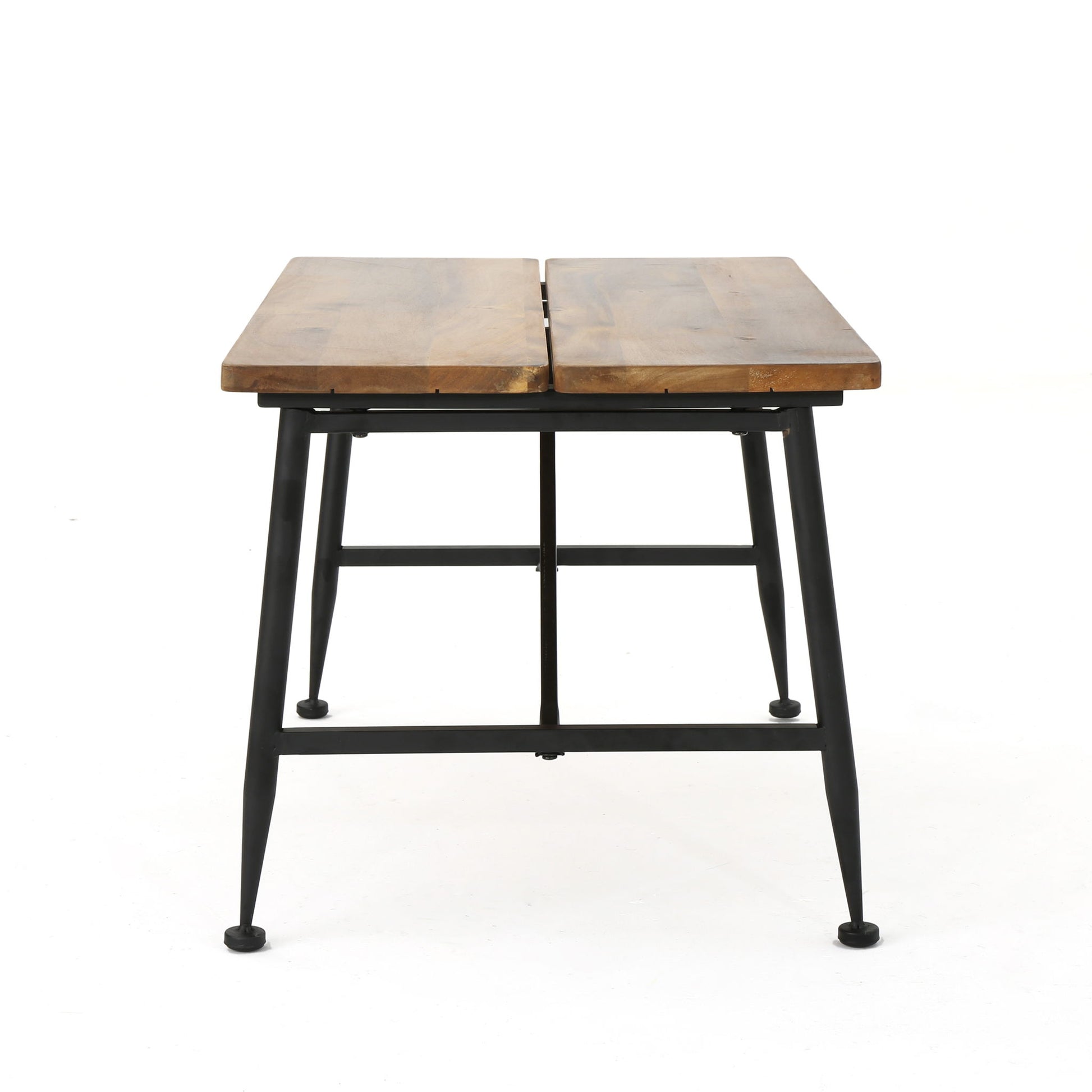 Rectangle Outdoor Coffee Table With Angled Tubular Legs And Wood Top - Black