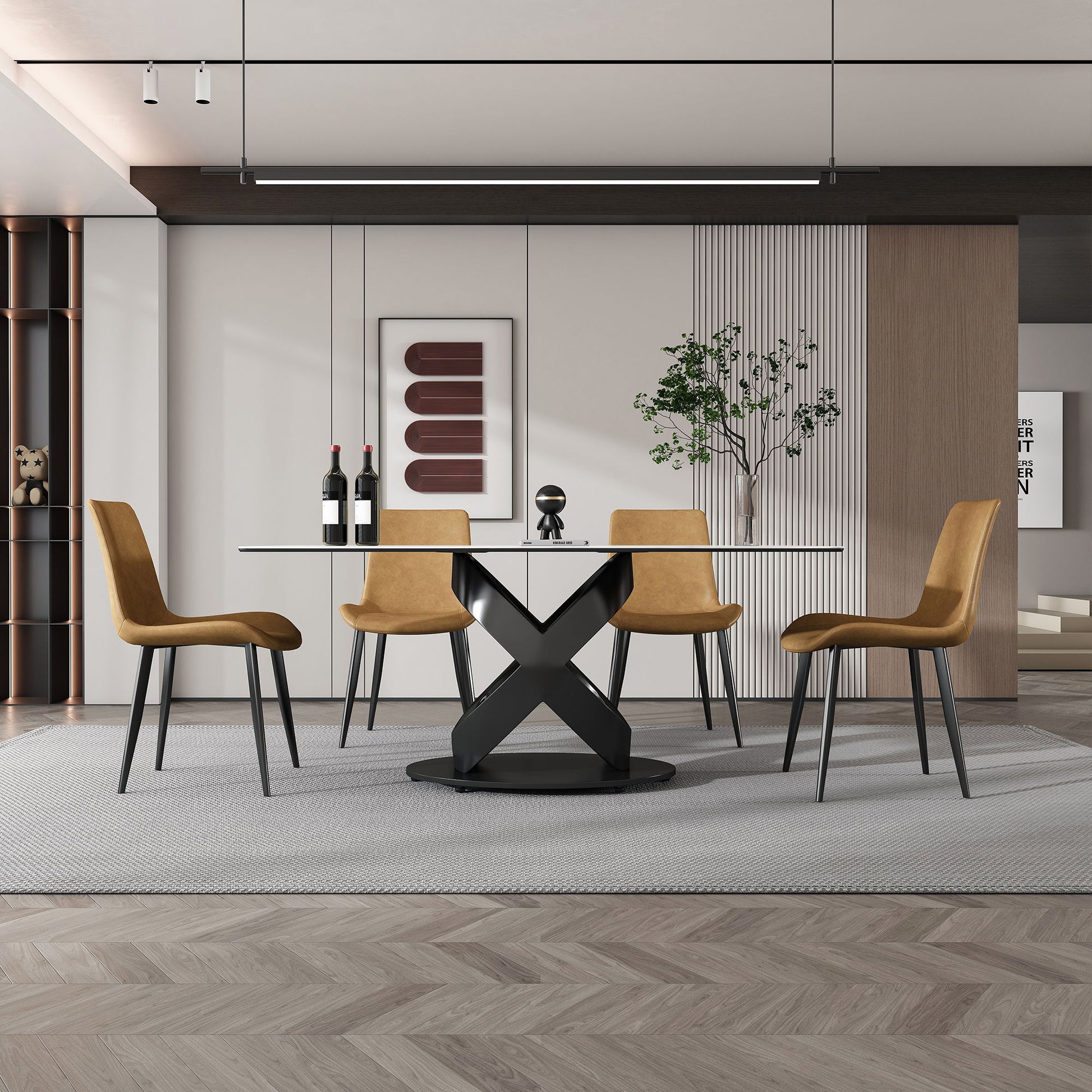 Rectangular Dining Table, For Dinner Party, 4 Chairs - Black / White