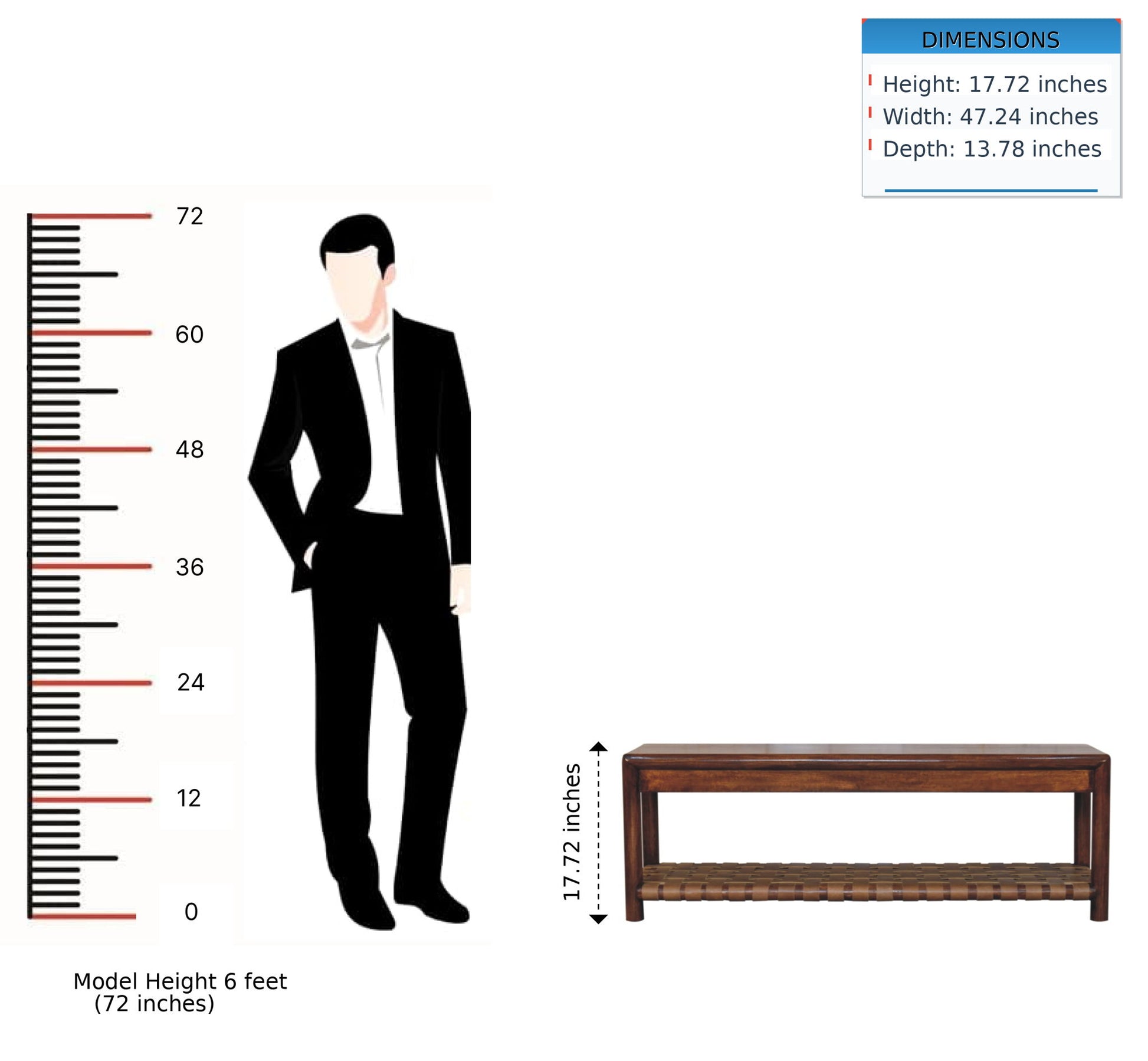 - Product Dimensions- Height: 17.72 in Length: 47.24 in Width: 13.78 in Weight: 44.09 lbs
