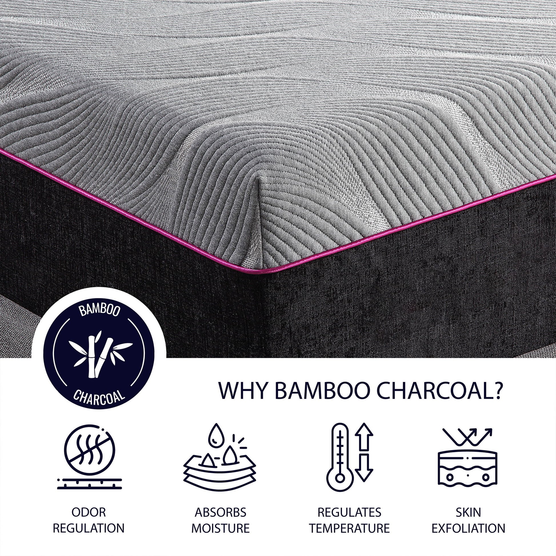 - Bamboo Charcoal Breathable Knit Cover helps dissipate heat while preventing moisture and odor.