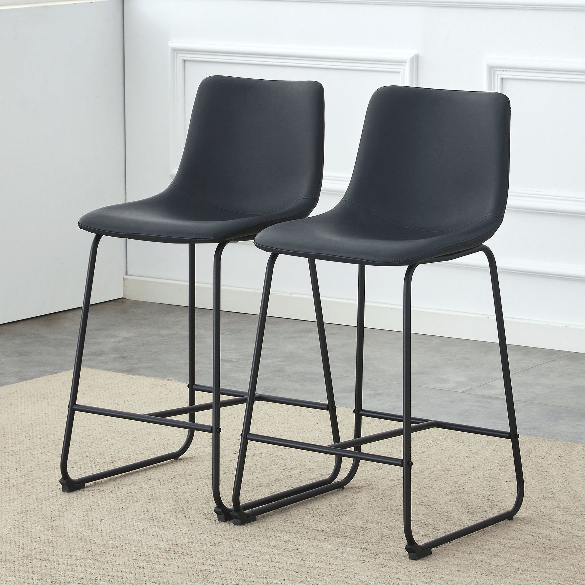 (Set of 2) Modern Minimalist Style Material Bar Stools, Suitable For Kitchen, Bar And Modern Home Design - Black