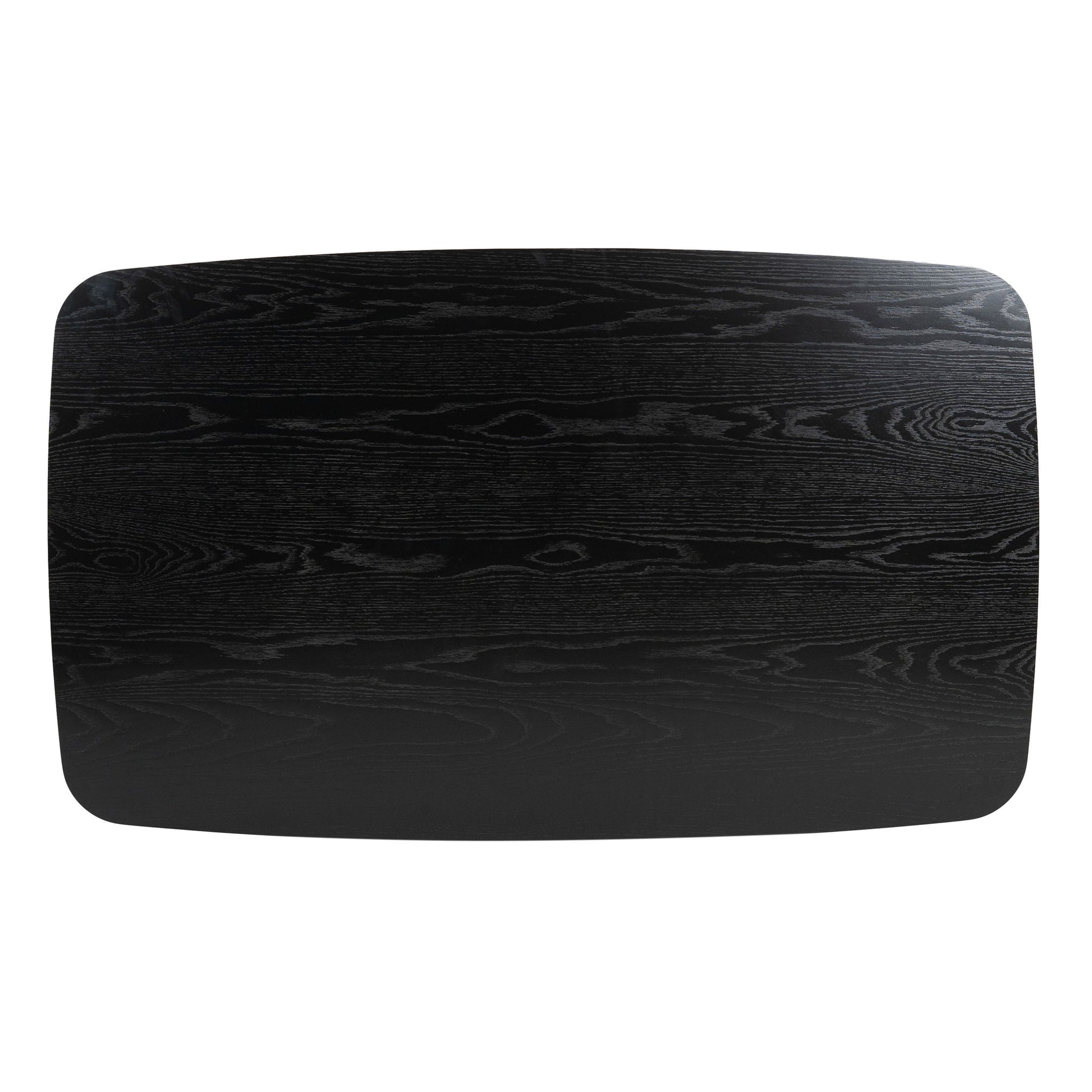 Mid Century Dining Table With Rubberwood Legs And Faux Wood Tabletop - Black