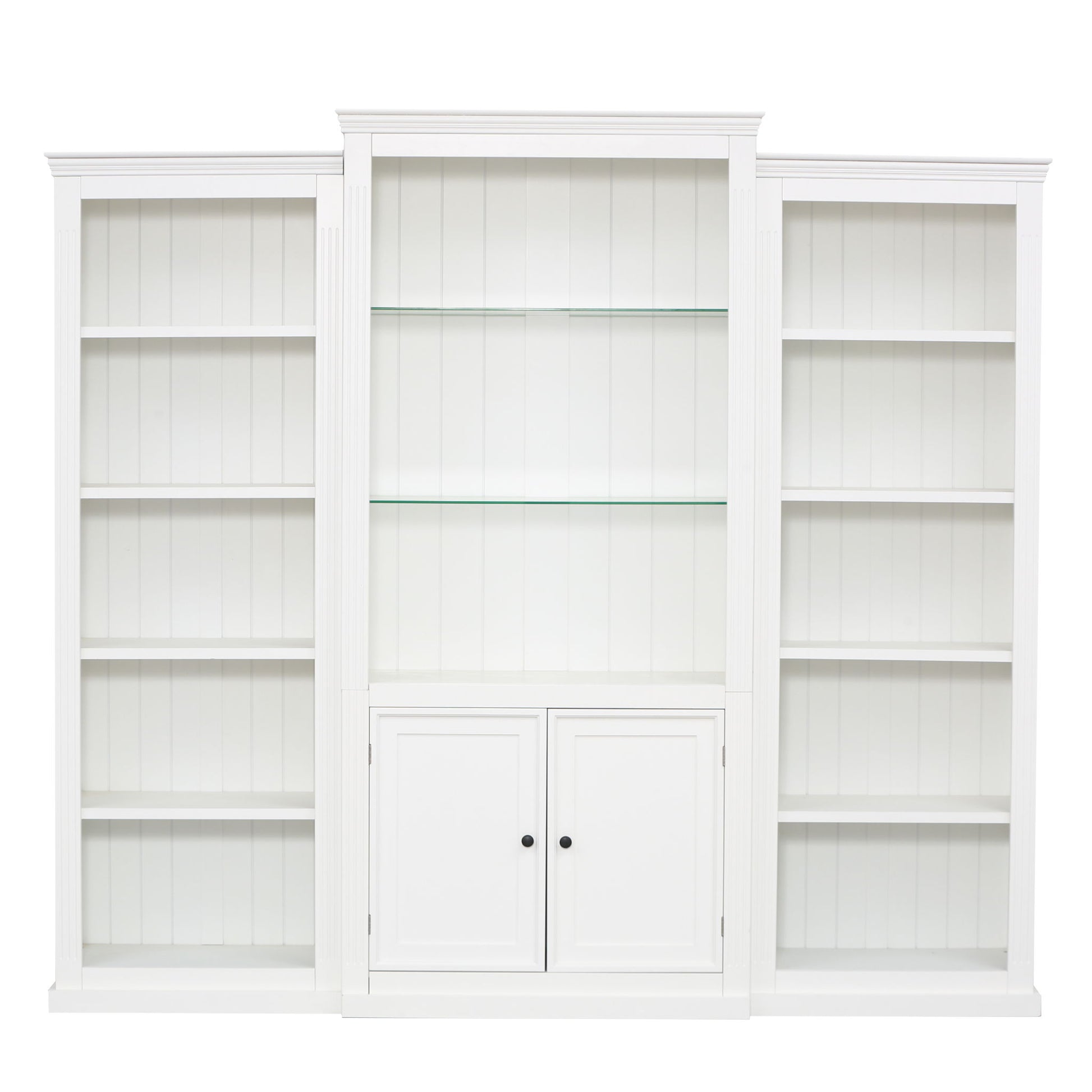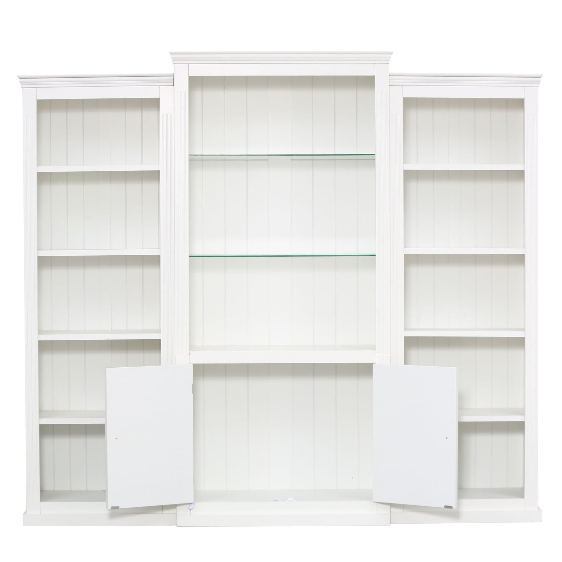 Retro Style 3 Piece Bookcase Display Cabinet With Adjustable LED Lighting, Tempered Glass Shelves - White