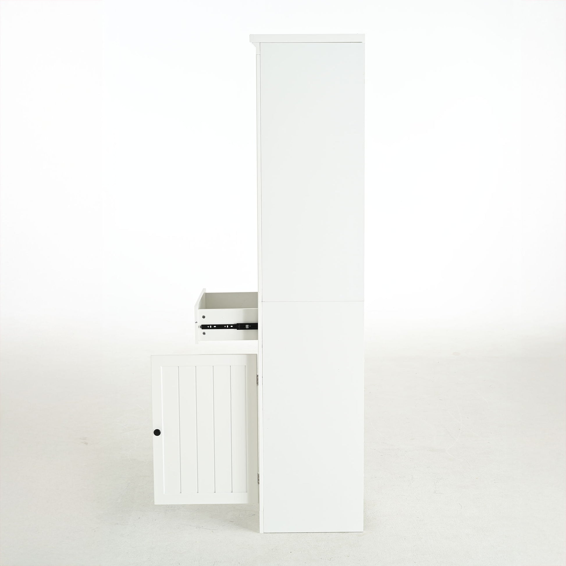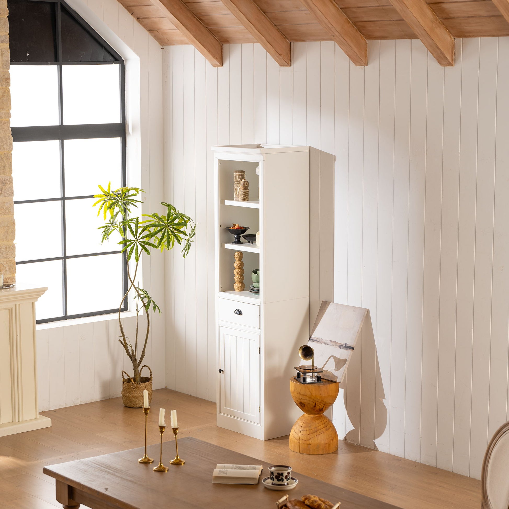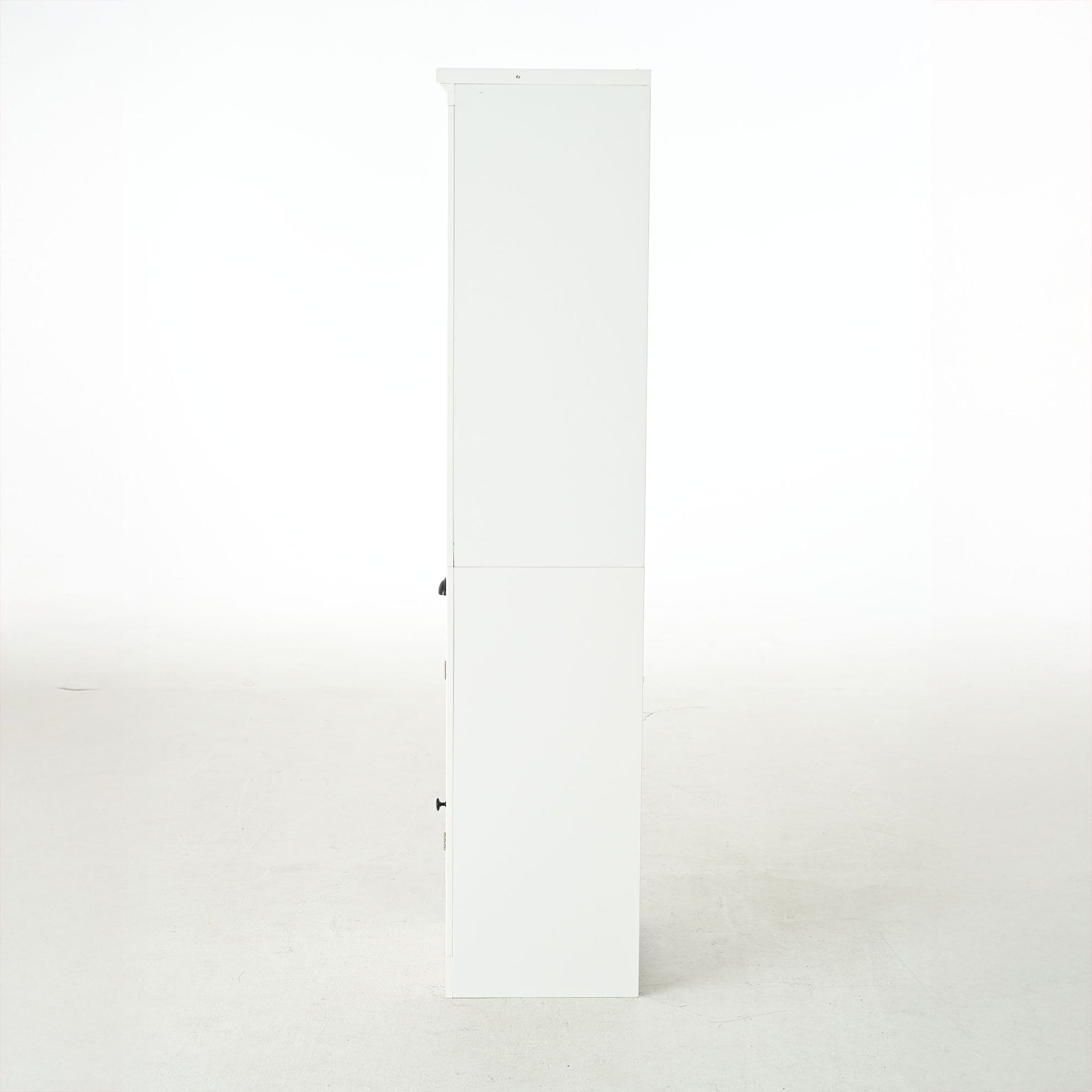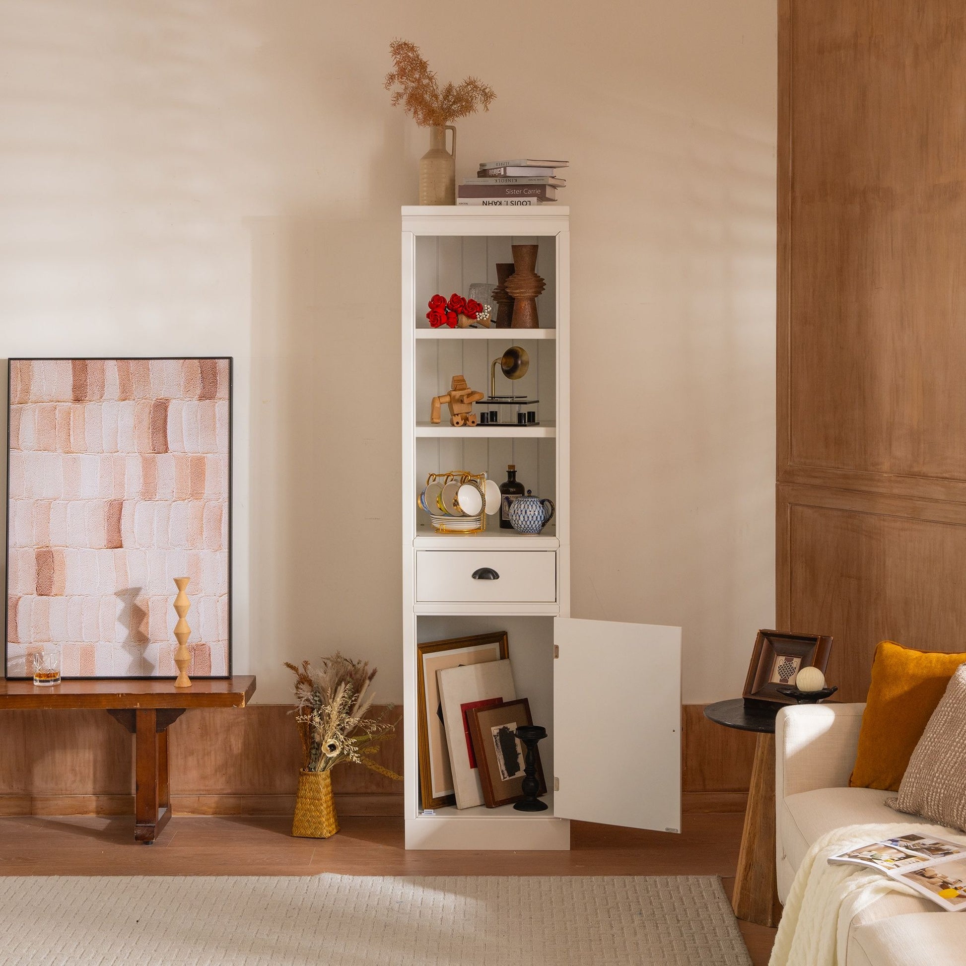 Retro Style 75'' Tall Display Shelf With Cabinet For Hallways Living Room Kitchen - White
