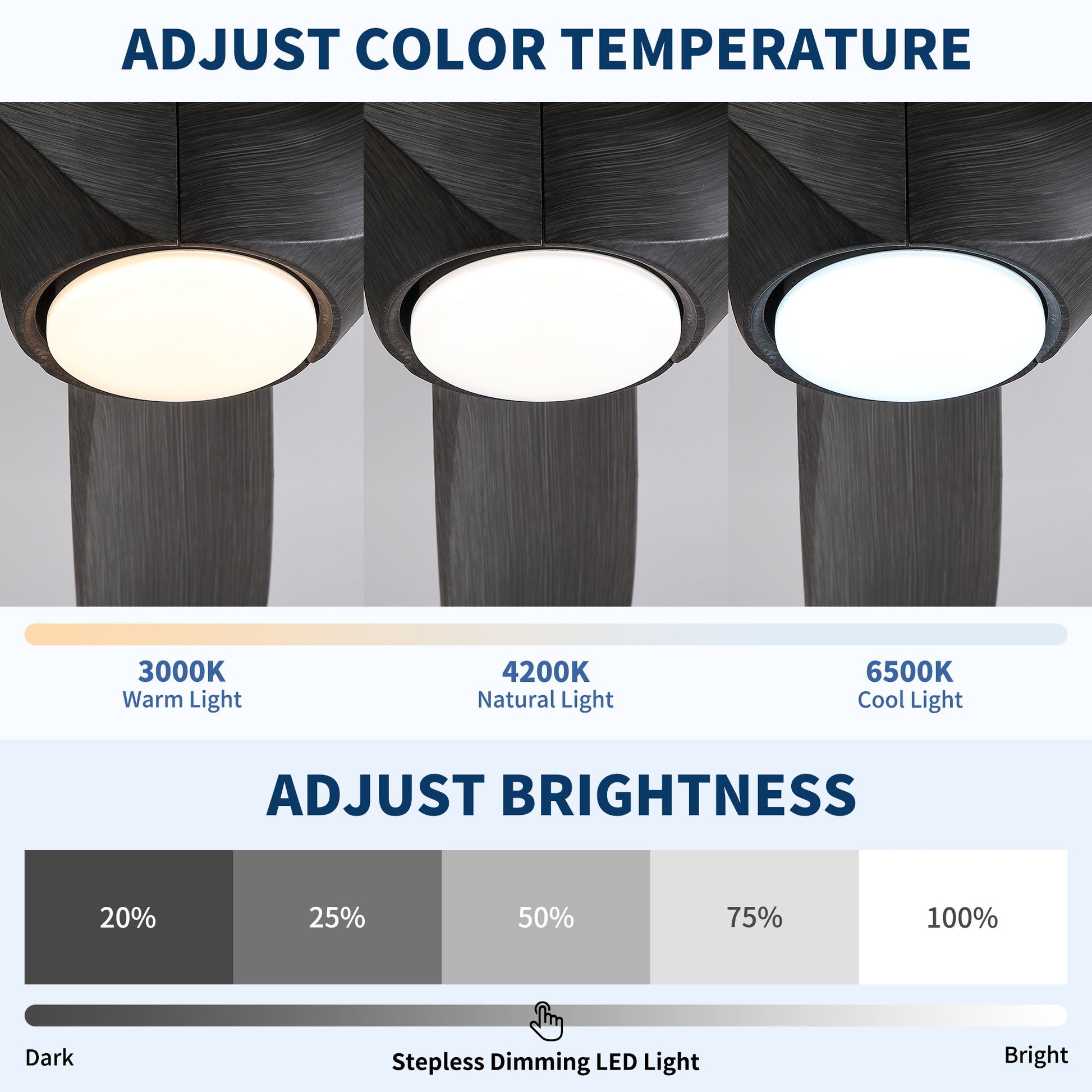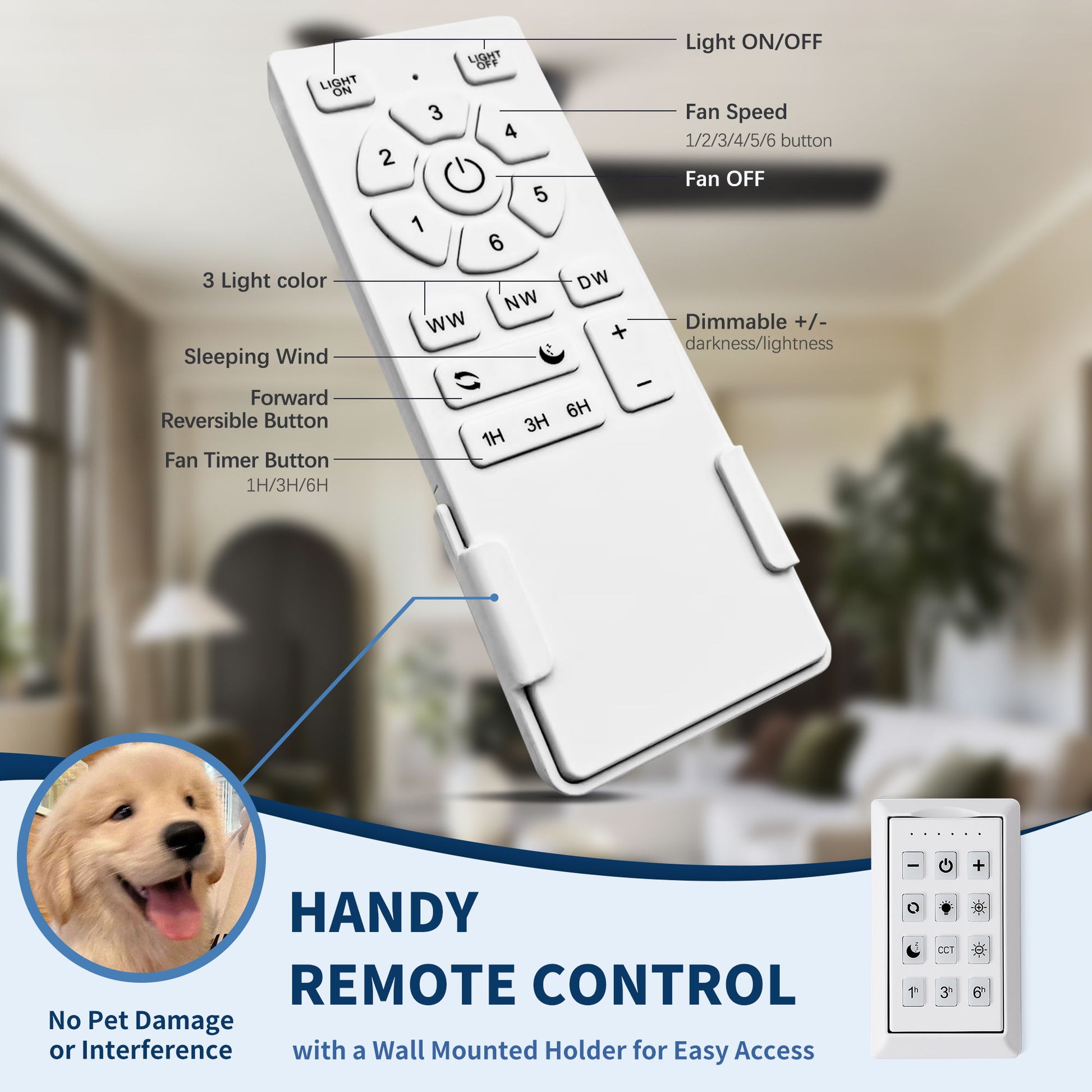 - Control Method: Comes with a remote control for easy operation of fan speed, light settings, and rotation direction.