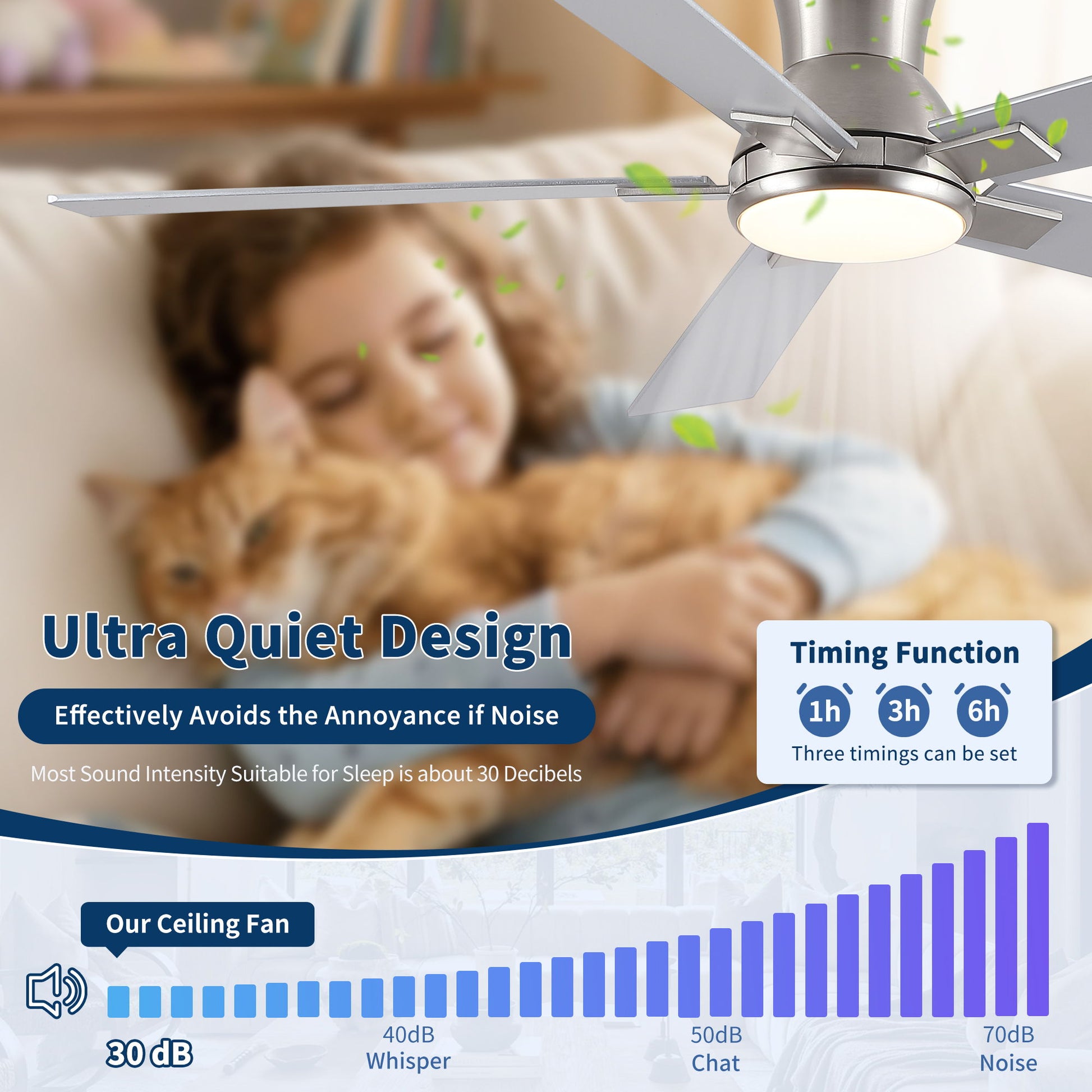 Reversible Quiet Motor Ceiling Fan Light With ABS Blades