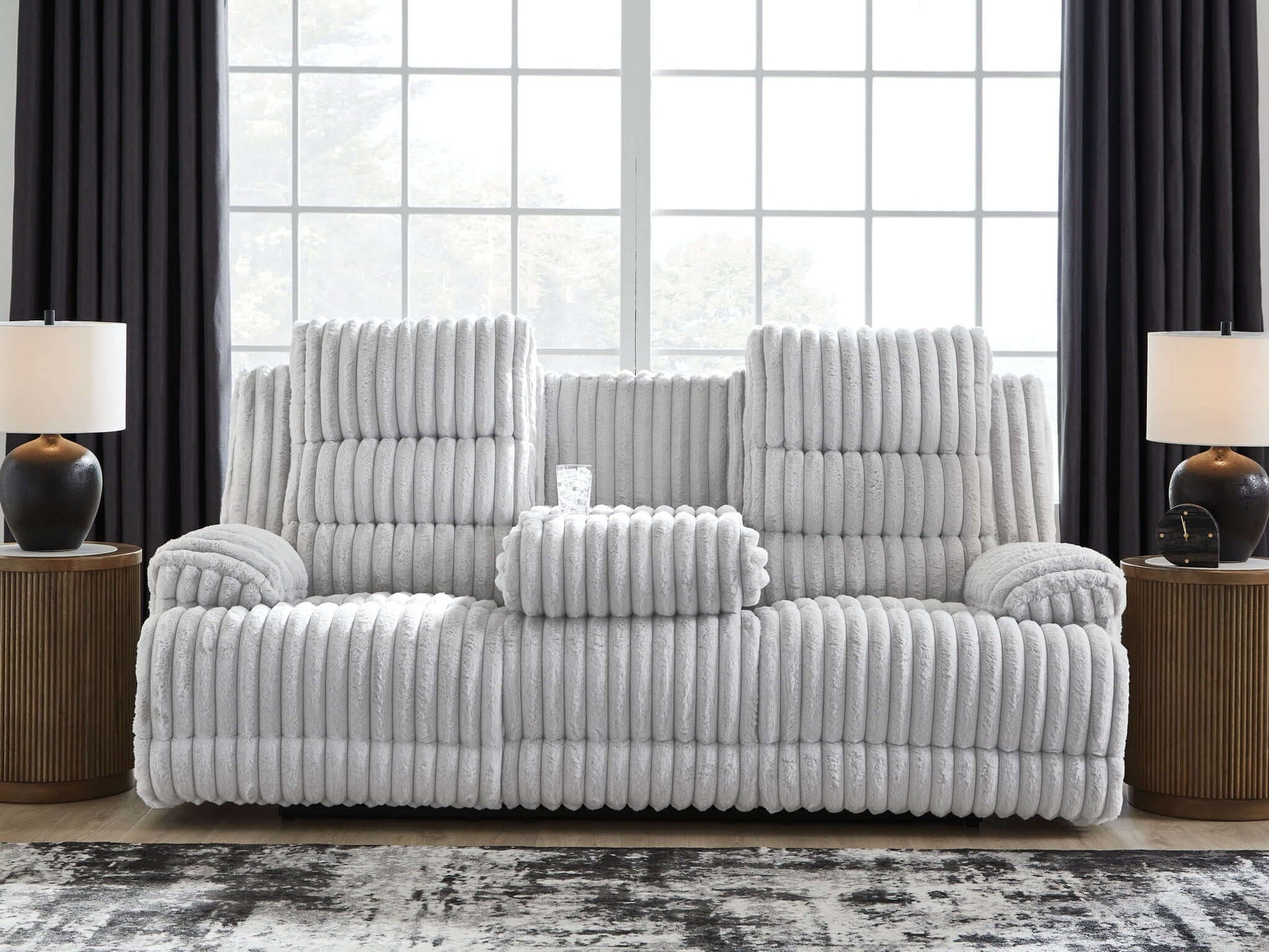 Rhines Falls - Reclining Power Sofa With Drop Down Table - Alloy