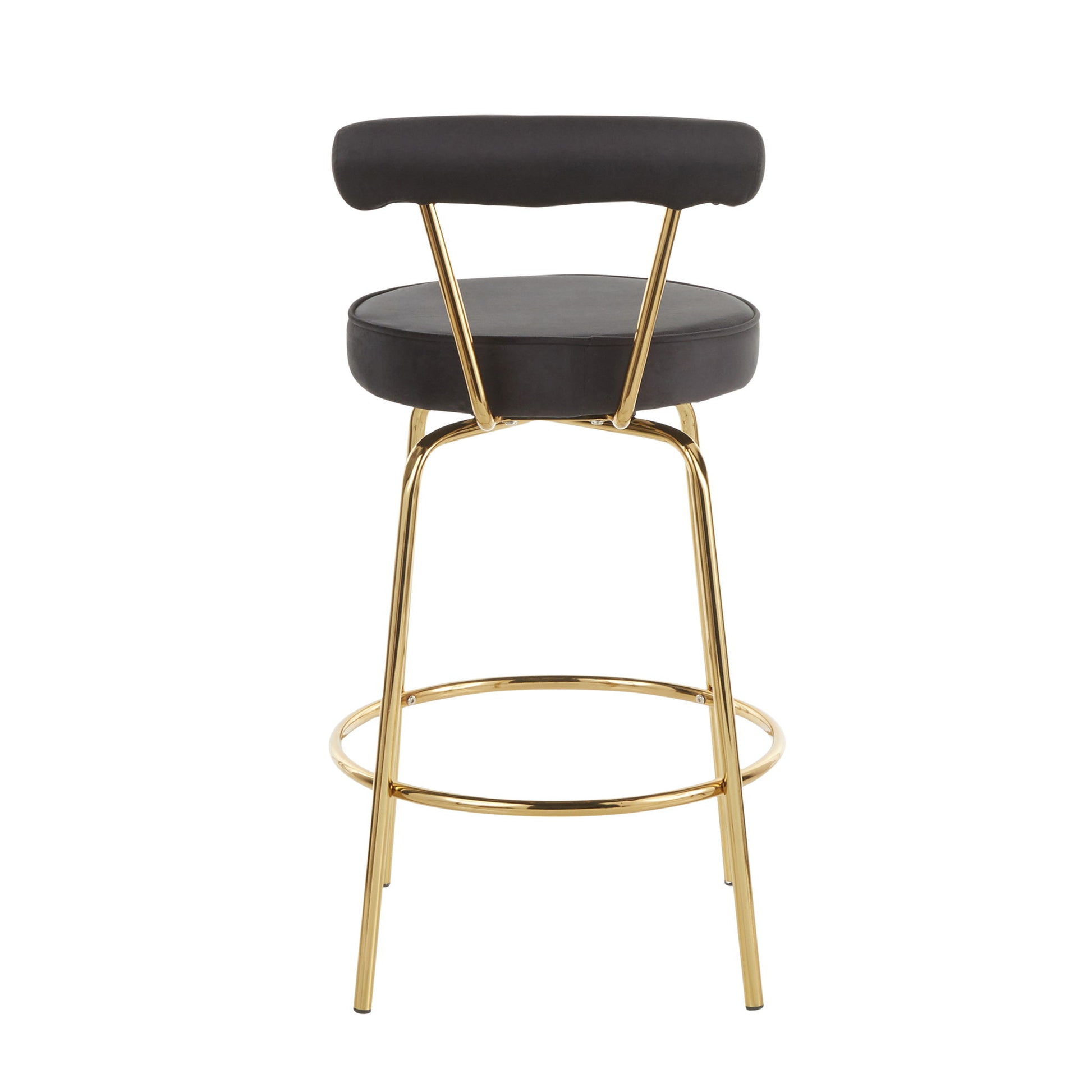 - Art Deco Design: The Rhonda Counter Stool boasts an opulent and striking art deco-inspired design, featuring a sleek metal frame with tapered legs and a luxurious gold finish.