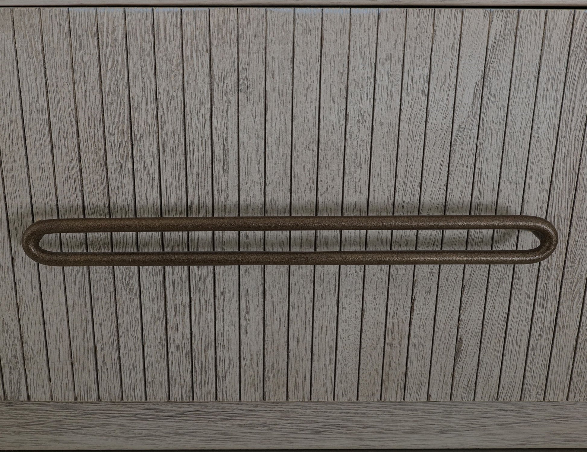 - Multi-step lacquer finish in a light gray and brown finish on tops.