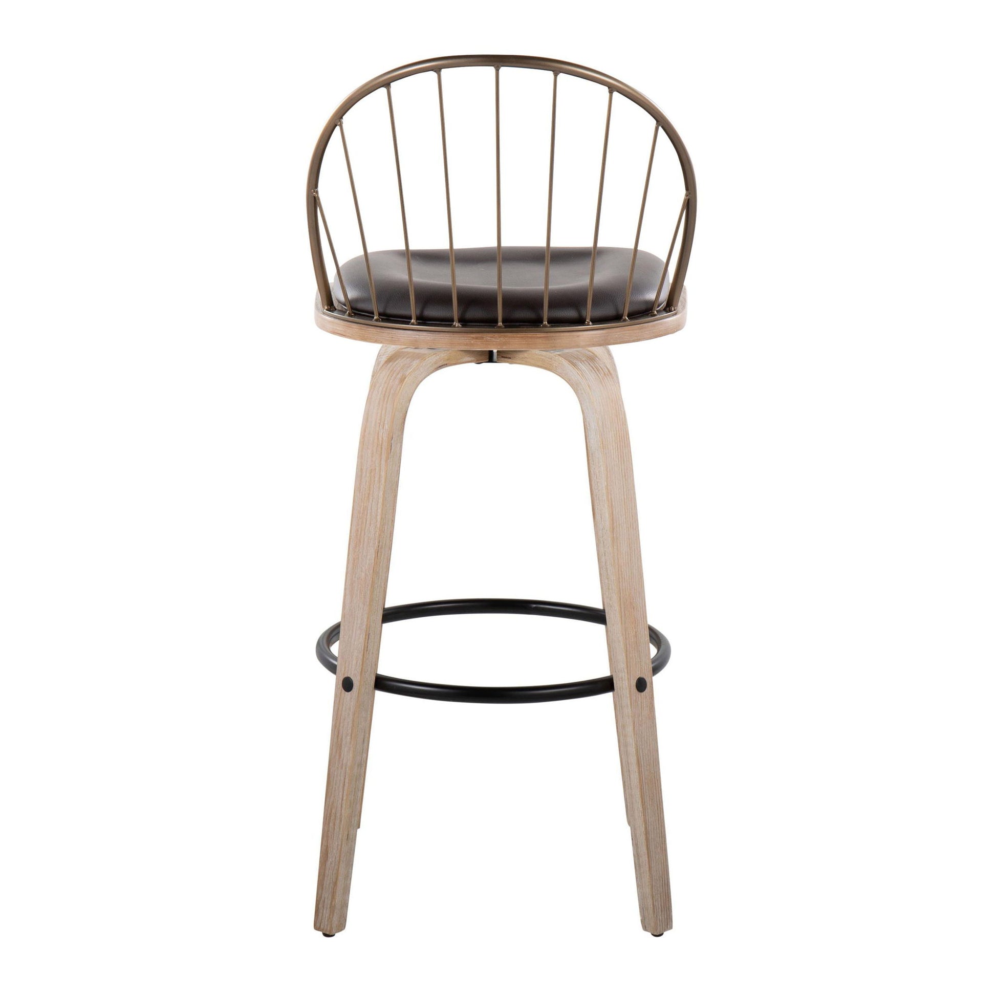 Riley - Industrial / Urban Fixed Height Barstool With Swivel With Removable Cushion (Set of 2) - White Washed / Brown