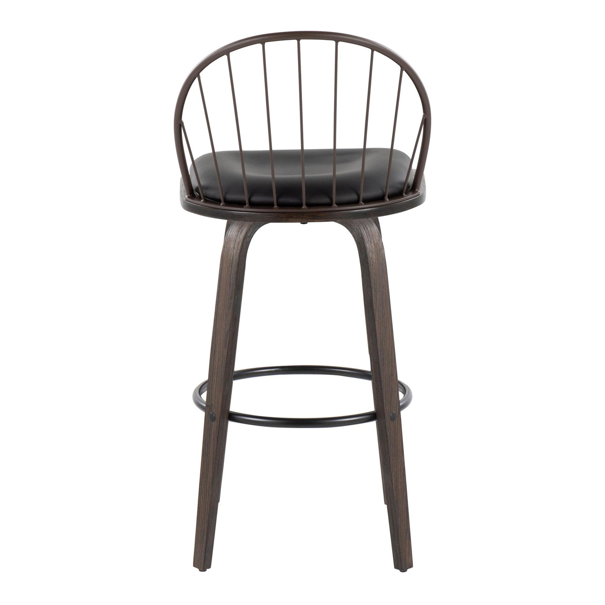Riley - Industrial / Urban Fixed Height Barstool With Swivel With Round Footrest With Removable Cushion (Set of 2) - Walnut / Brown