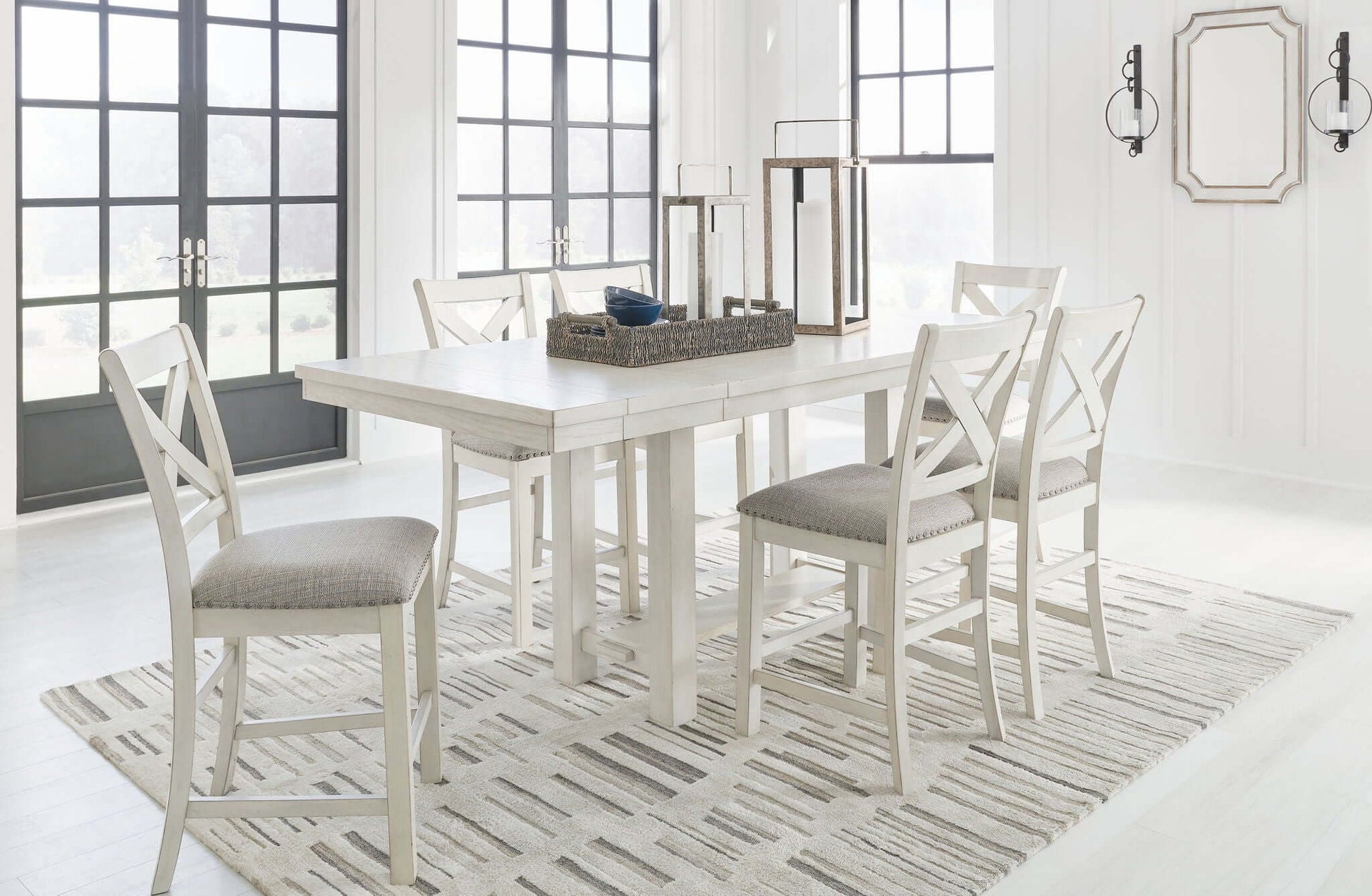 Robbinsdale - 7 Pc. - Rectangular Counter Height Dining Extension Table, 6 Barstools - Antique White