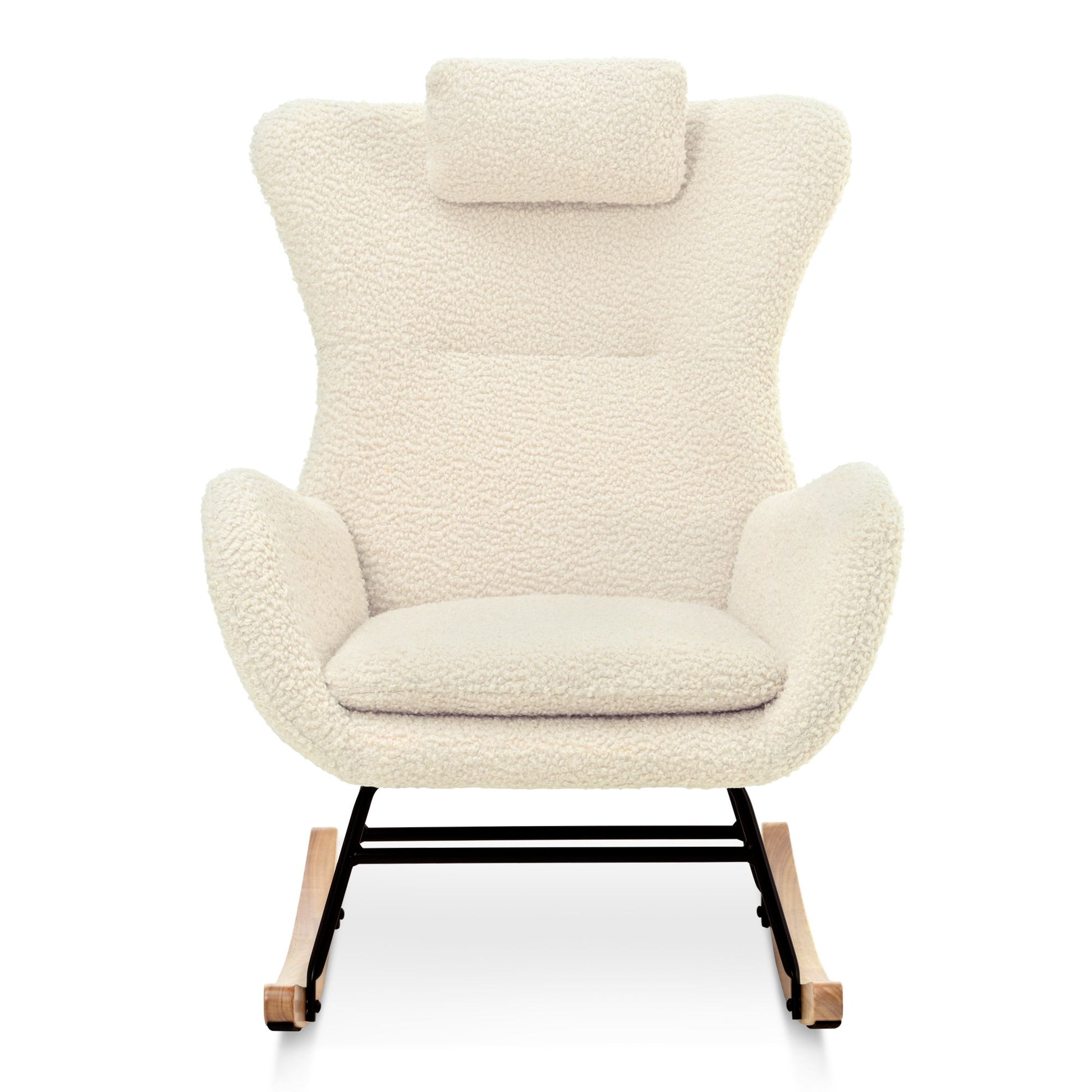 Rocking Chair Nursery, Teddy Upholstered Rocker Glider Chair With High Backrest, Adjustable Headrest & Pocket, Comfy Glider Chair For Nursery, Bedroom, Living Room, Offices, Rubber Wood