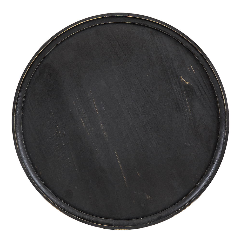 Round 3 Tiered Side Table With Rattan Shelf - Black