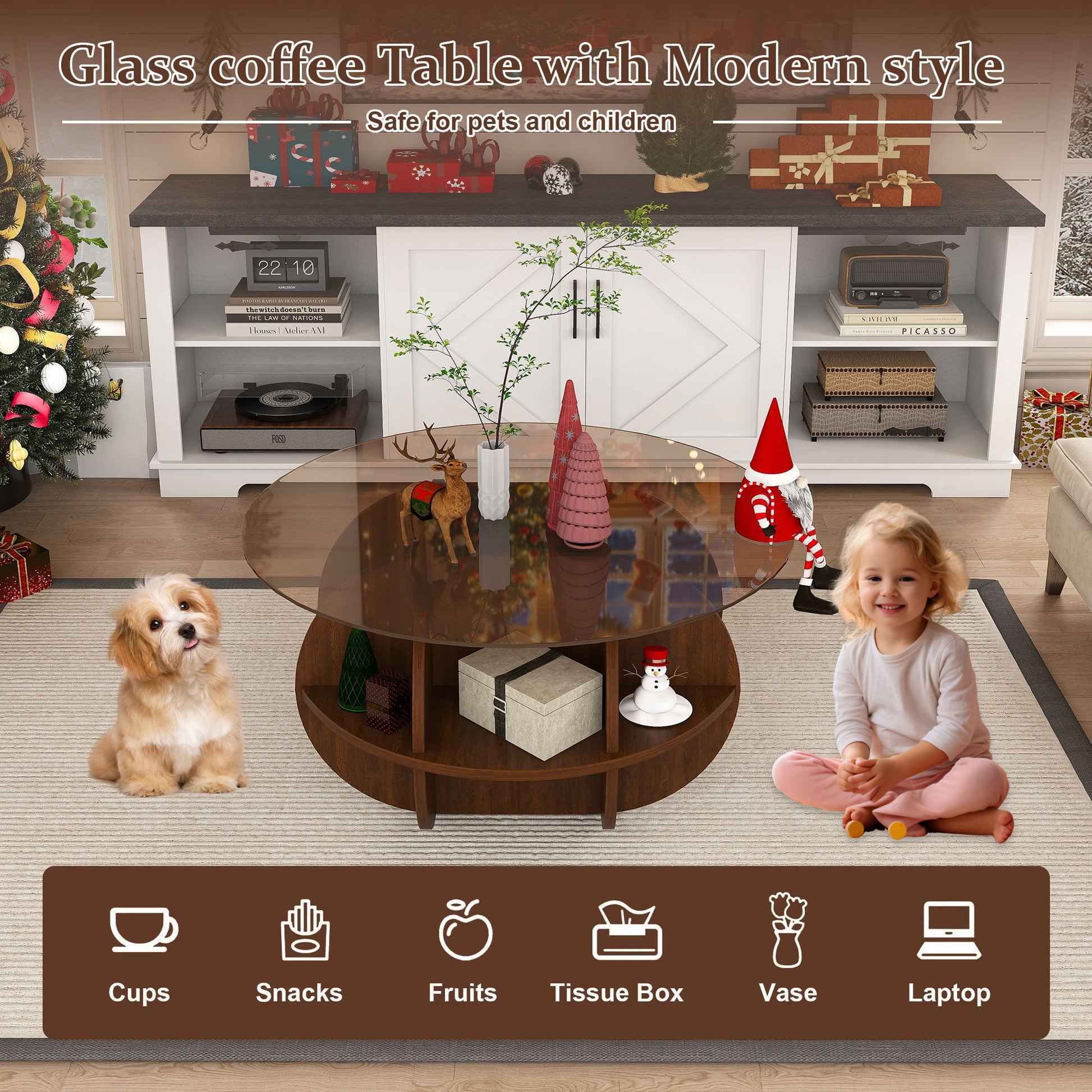 - Modern Farmhouse Elegance & Sturdy Construction: A sleek blend of contemporary and rustic charm with a durable tempered glass top and walnut-finish MDF frame.