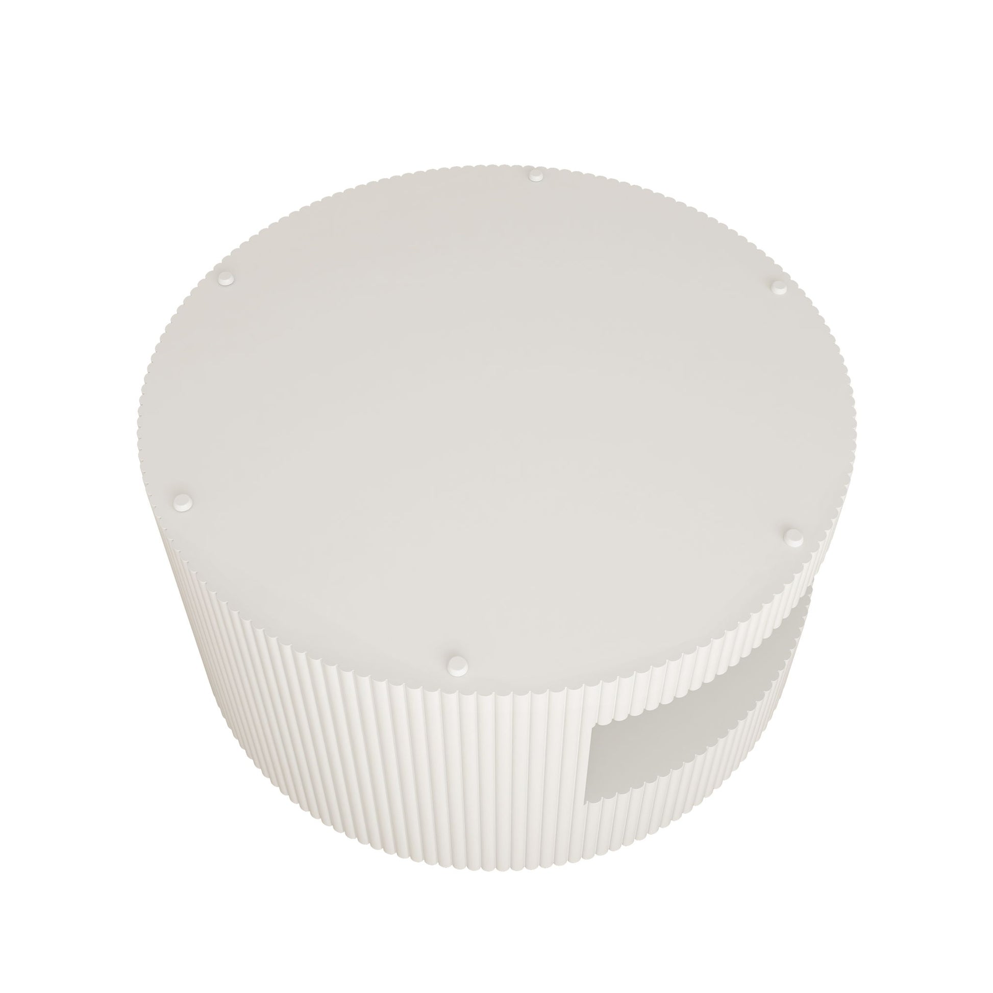 Round Coffee Table With Storage, Vertical Stripe Design - White