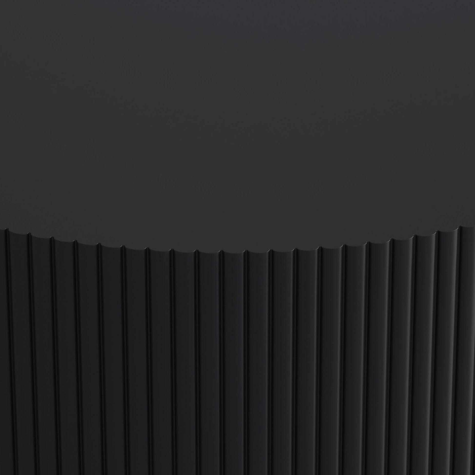 Round Coffee Table With Storage, Vertical Stripe Design - Black