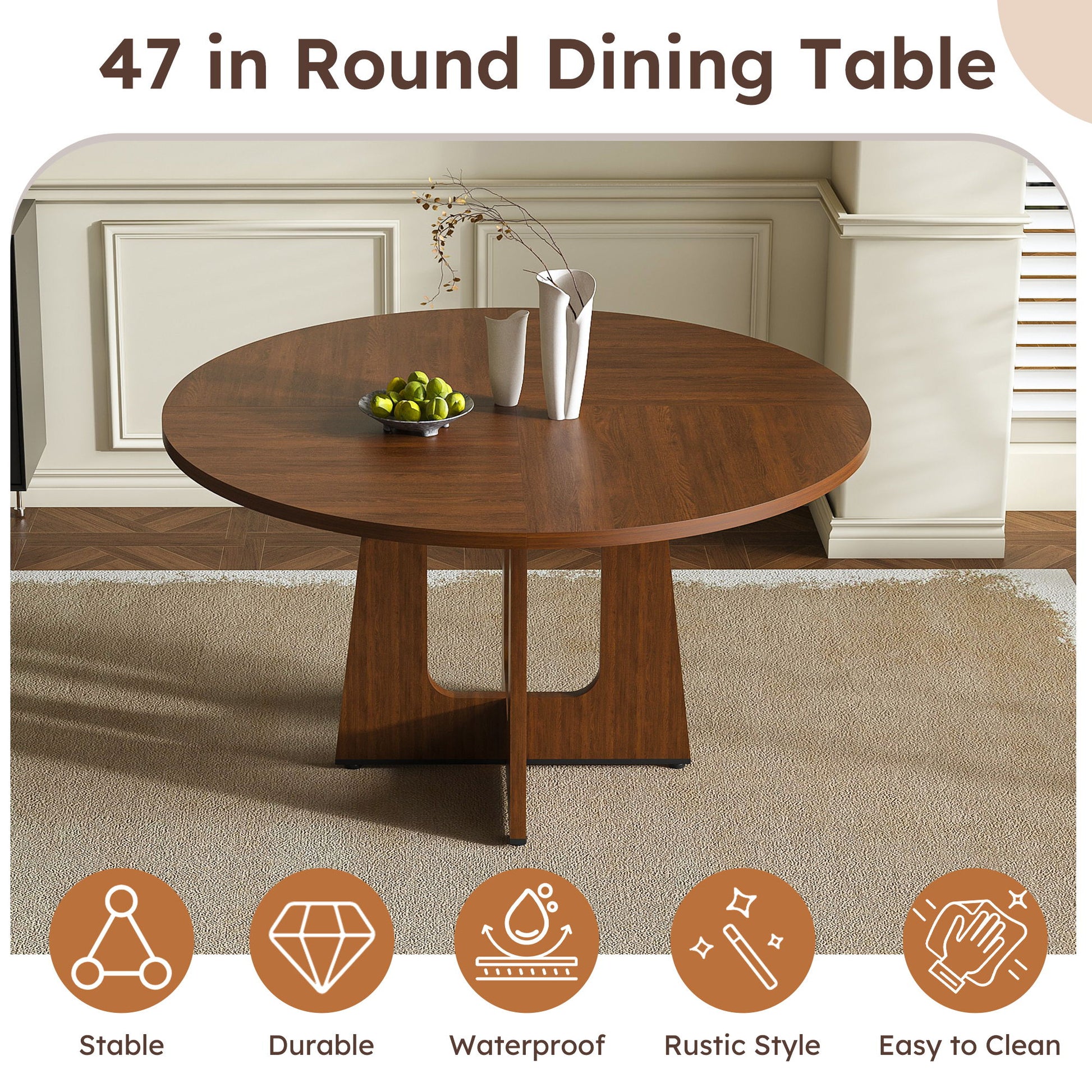 - Spacious Tabletop for Gatherings: 47.24-inch diameter offers ample room for 4-6 guests during meals or social events