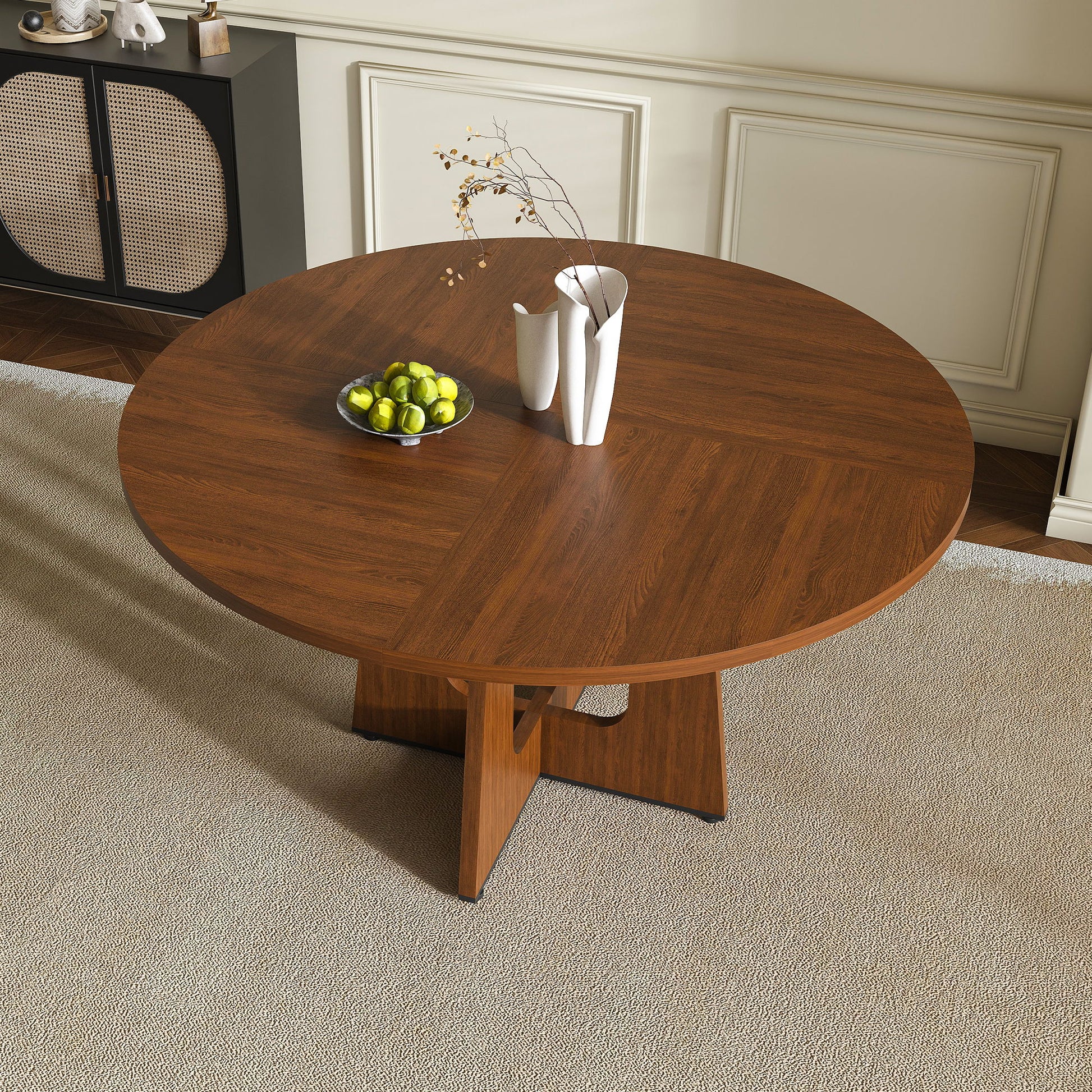 - Modern Farmhouse Aesthetic: Walnut finish complements various interior styles, adding warmth to any dining or living space