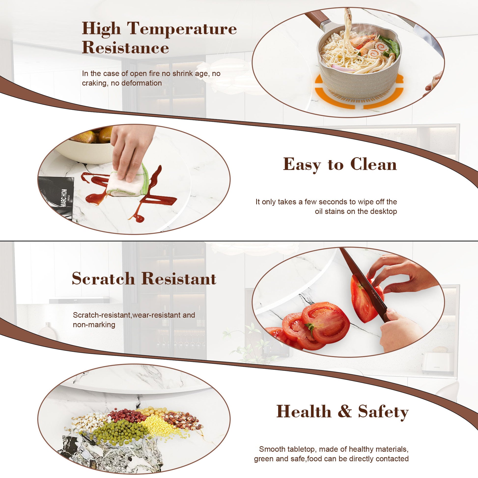 - 53-Inch Scratch-Resistant Tabletop: Durable sintered stone top with marble finish resists scratches, stains, and heat up to 1200°C, suitable for everyday use.