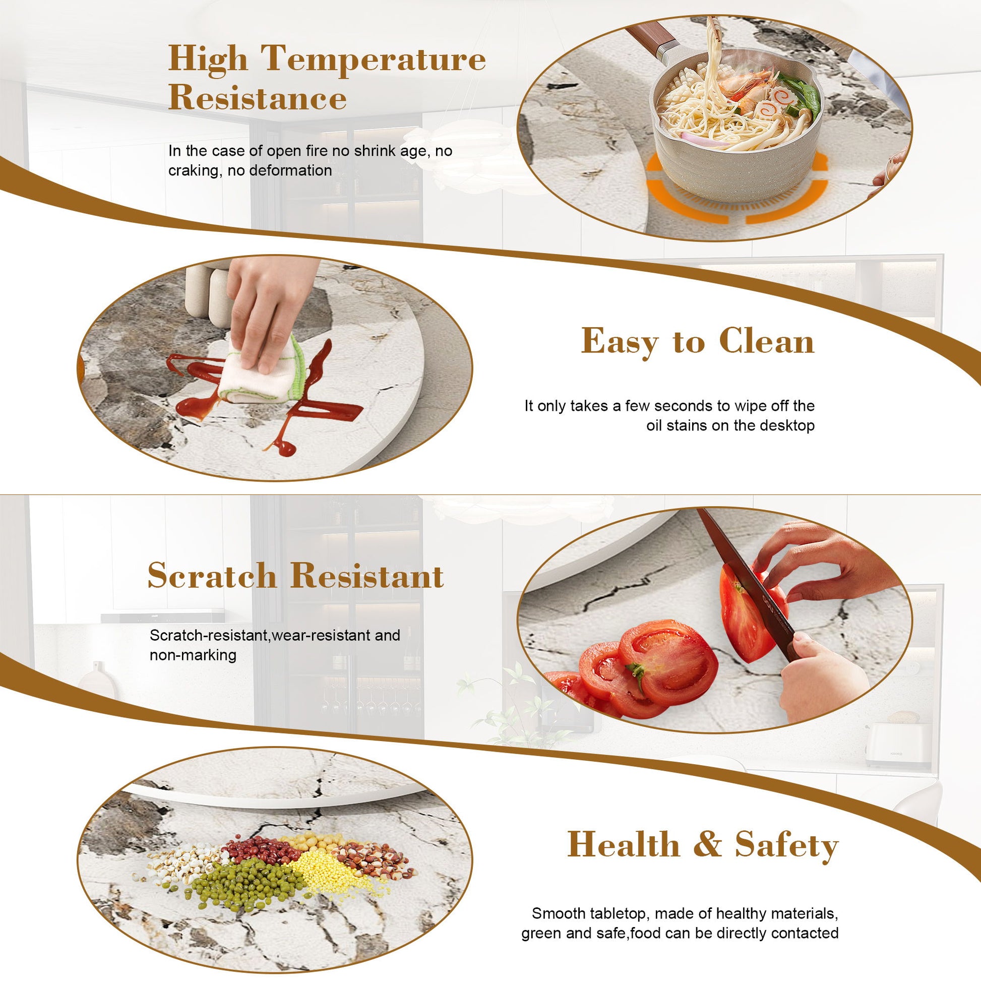 - 53-Inch Wide Top: Polished sintered stone surface resists scratches and stains, accommodating 8–10 guests with a safe rounded edge design
