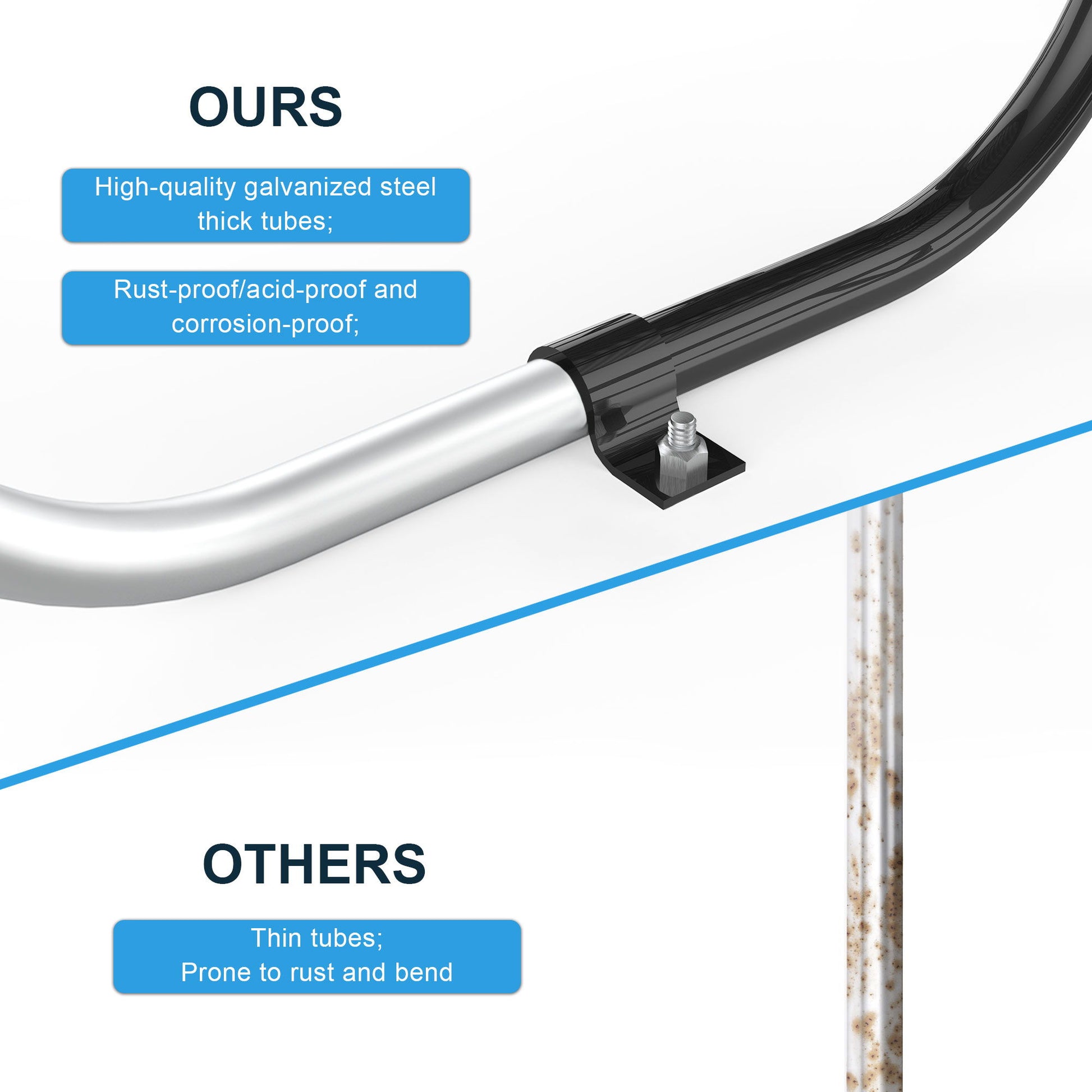 - Durable Frame: Made of industrial-strength steel with a thermoplastic coating and galvanized frames with a heavy-duty powder coat finish for weather resistance.