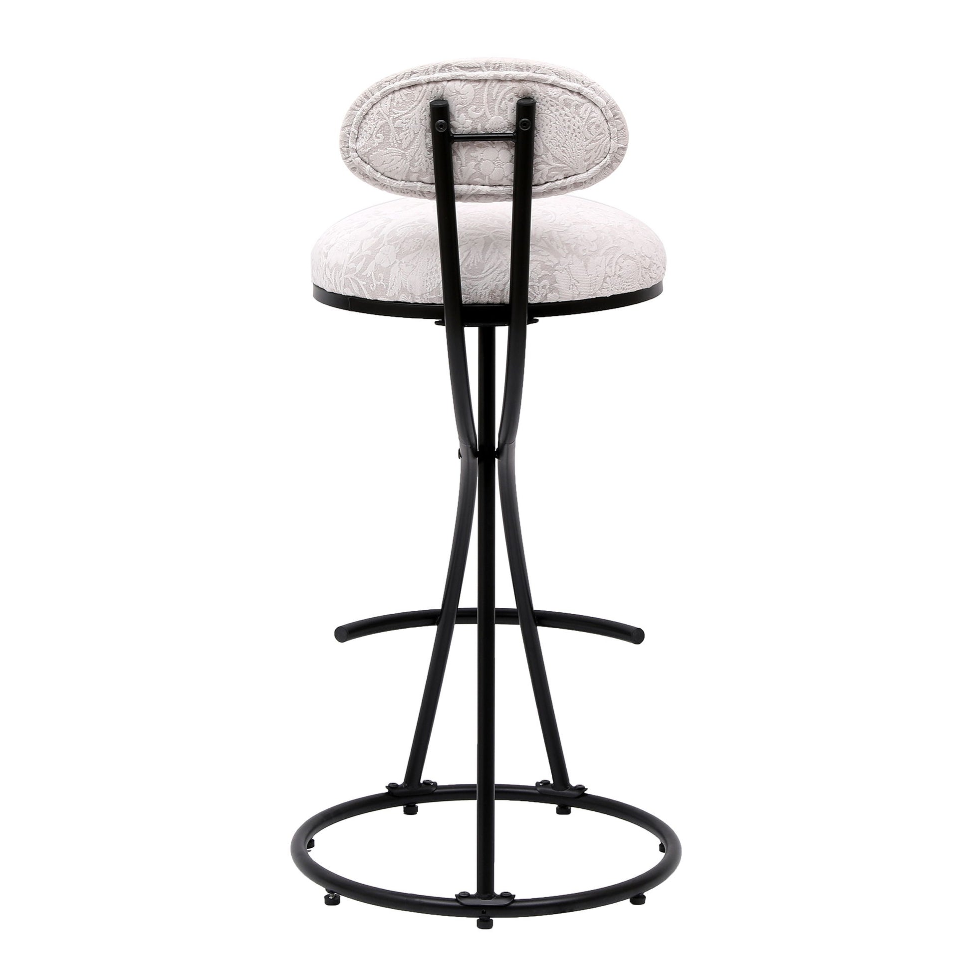 Round Print Bar Stools (Set of 2) Metal Upholstered Chairs For Kitchen Island & Dining Rooms - Black & White Print