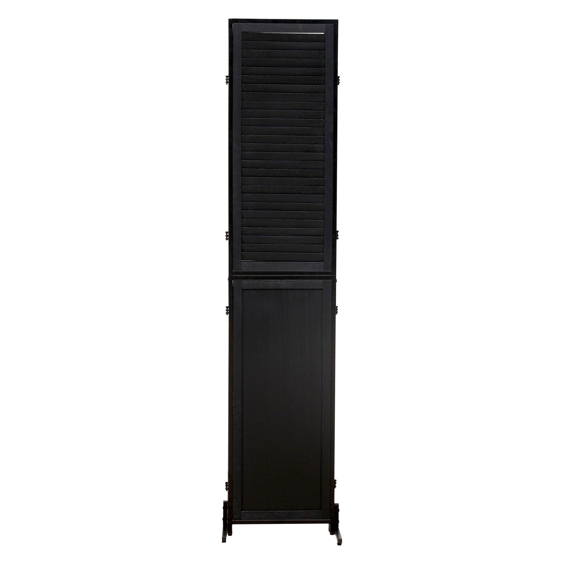 Rustic 3 Panel Room Divider 6Ft Wood Folding Privacy Screen With Metal Frame And Louver Design - Black