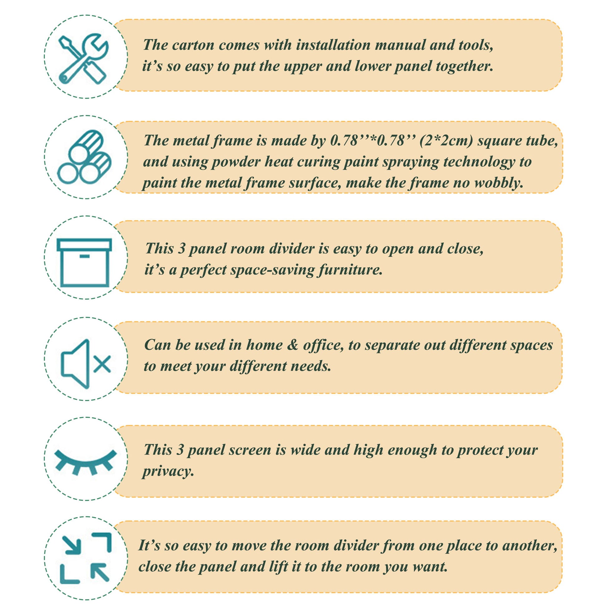 - Hassle-free Package: You will receive 1 box containing 3 panel room separators, along with parts and tools required for easy installation.
