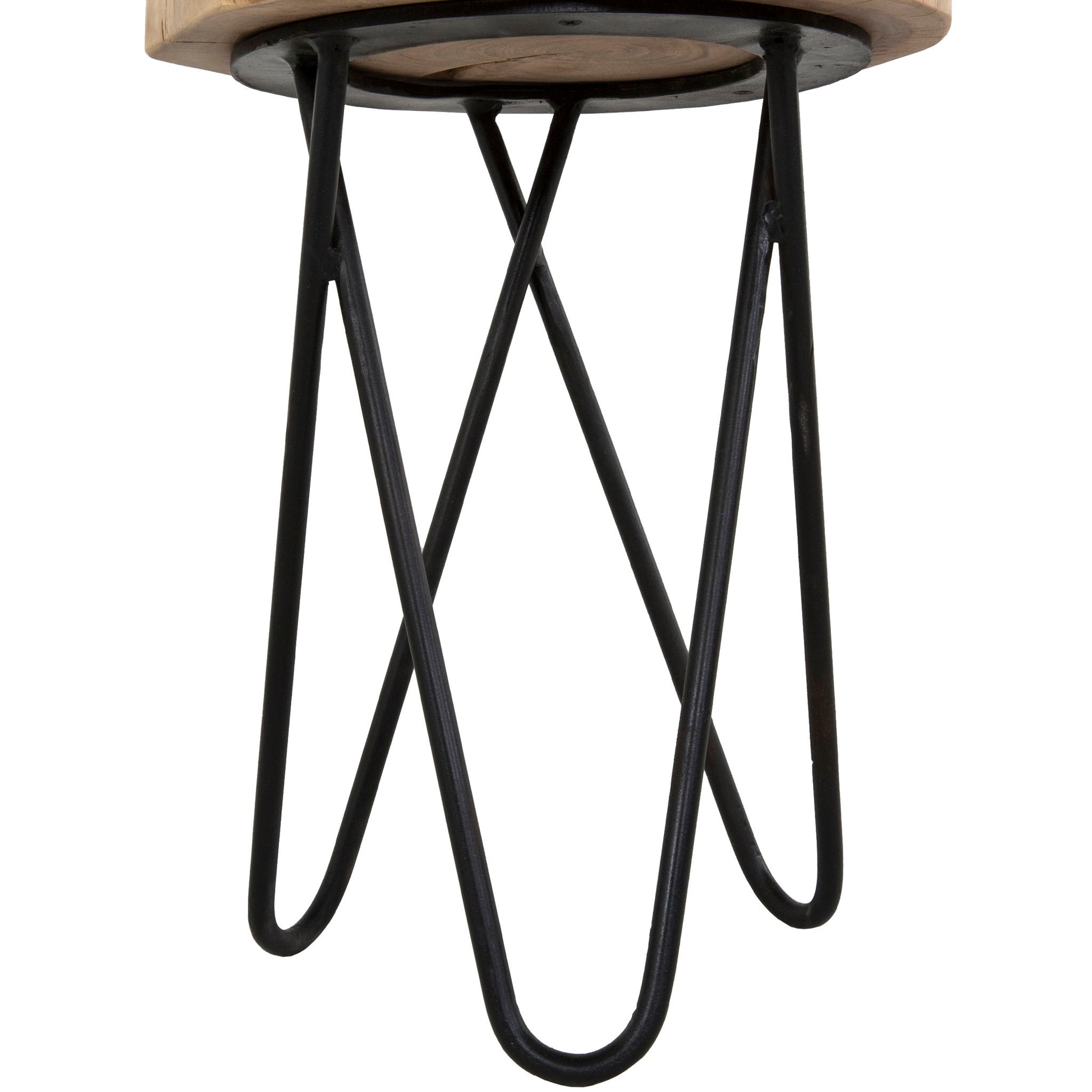 Contemporary Rustic Wood Round End Table With Iron Hairpin Legs - Black / Brown