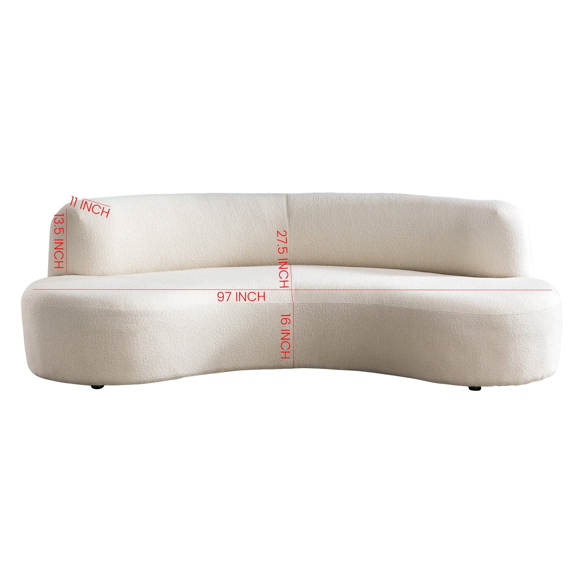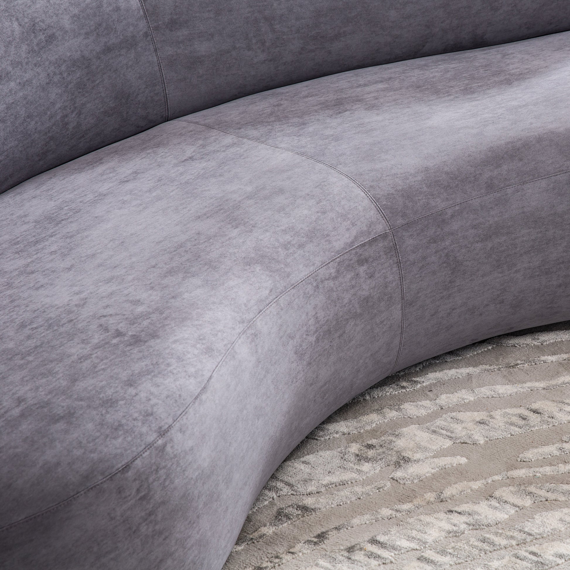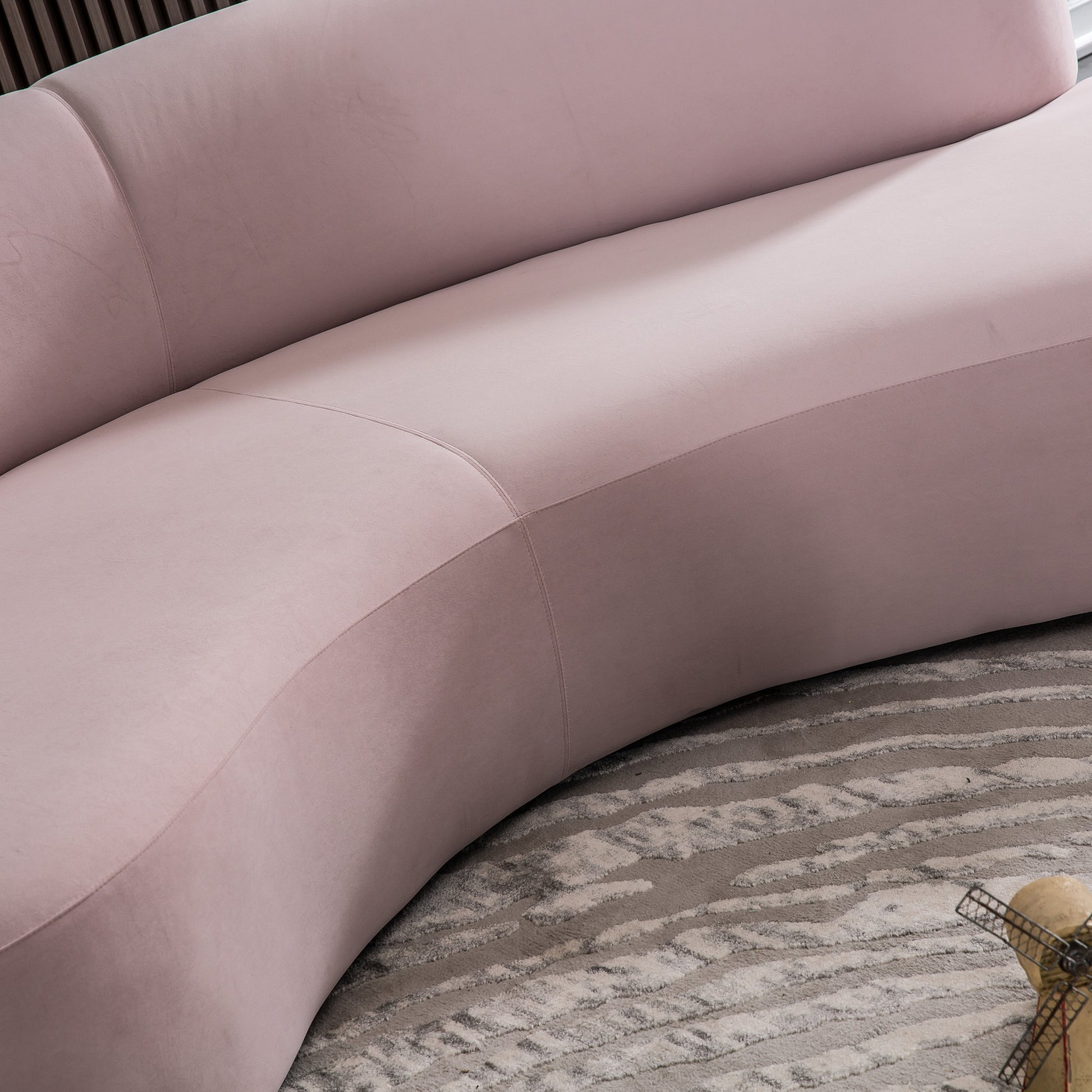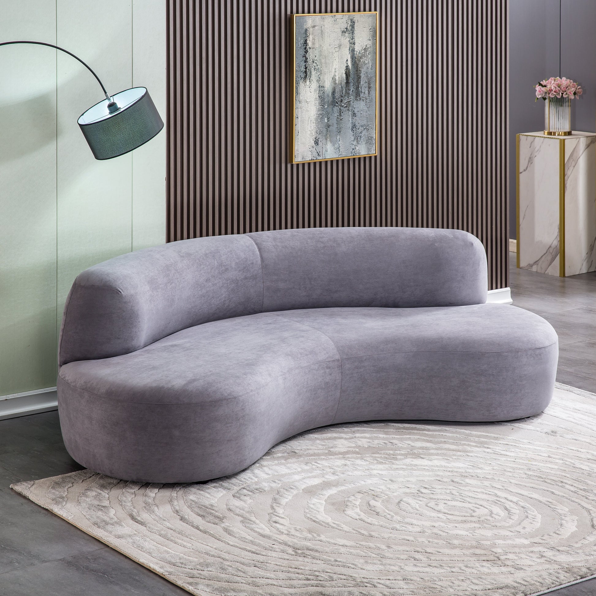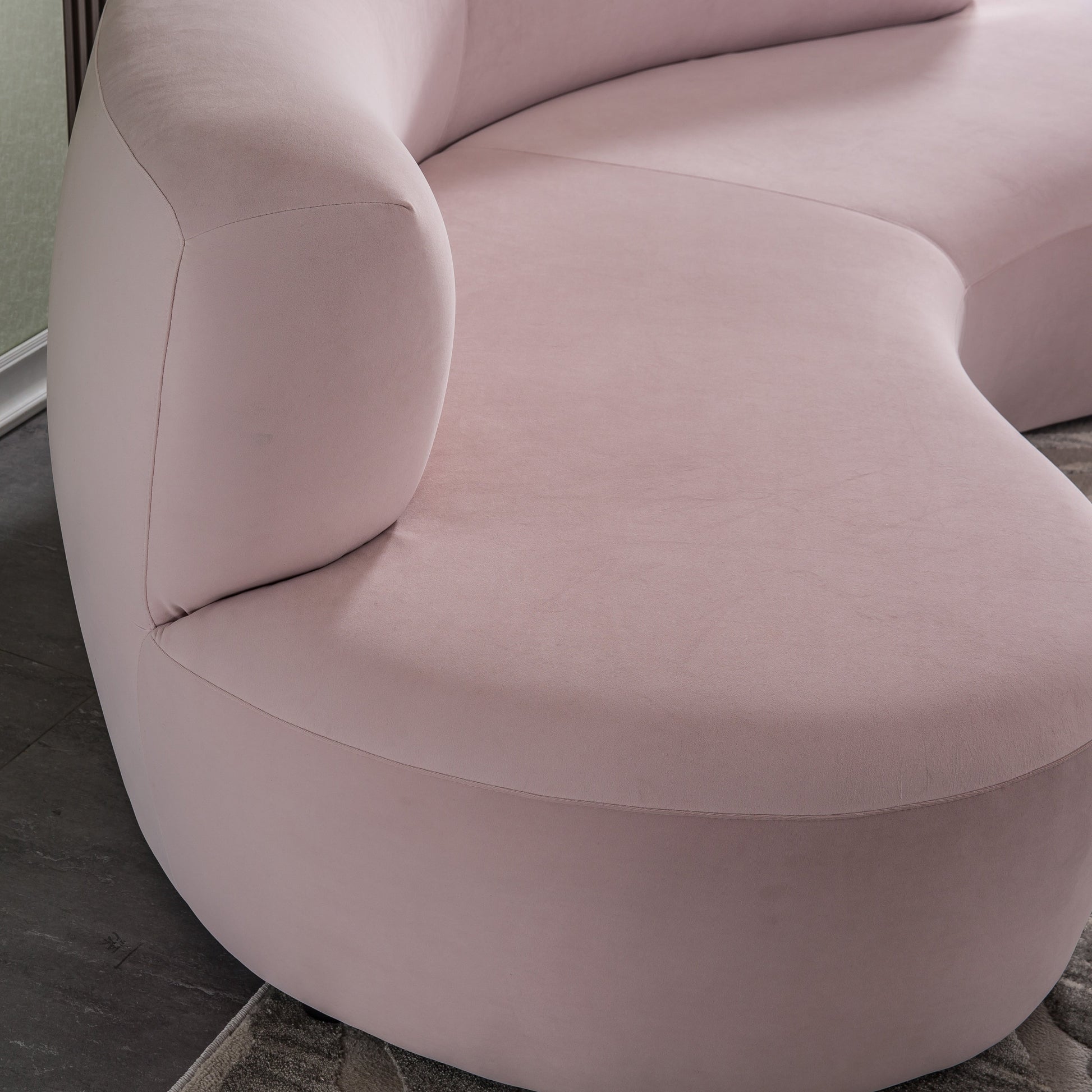 Add a touch of modern sophistication to your living space with this beautifully designed curved sofa. Available in three luxurious upholstery options – soft white fabric, durable grey fabric, or plush pink velvet – it offers both comfort and style. With its solid wood structure and high-density foam cushions, this sofa delivers exceptional support. Measuring 94.5"L x 49.2"D x 29.9"H, it’s perfect for creating a statement in larger rooms. Plus, no assembly is required, allowing you to enjoy your new centerpiece immediately.