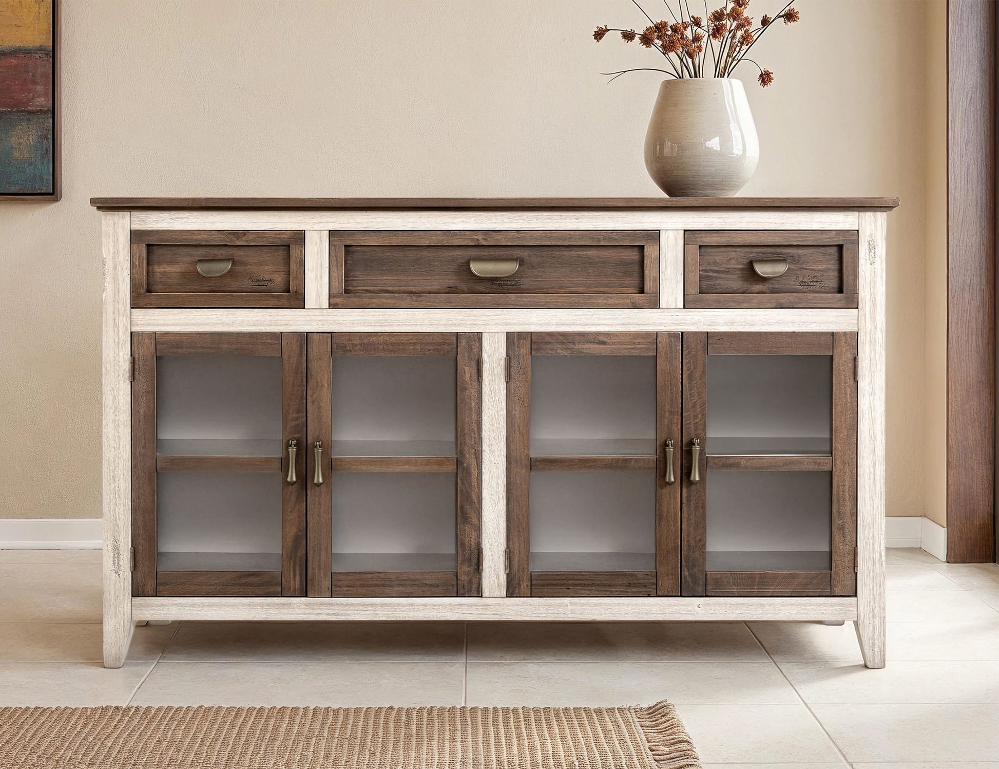 Sahara - 3 Drawer, 4 Doors Console / TV Stand / Buffet - Light Cream / Brown Caramel