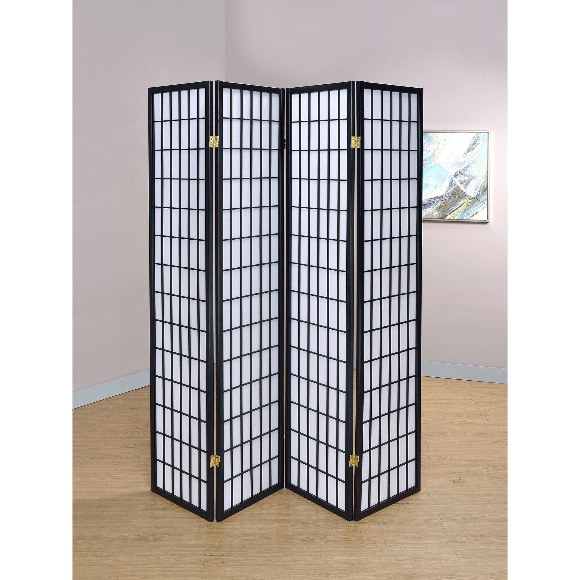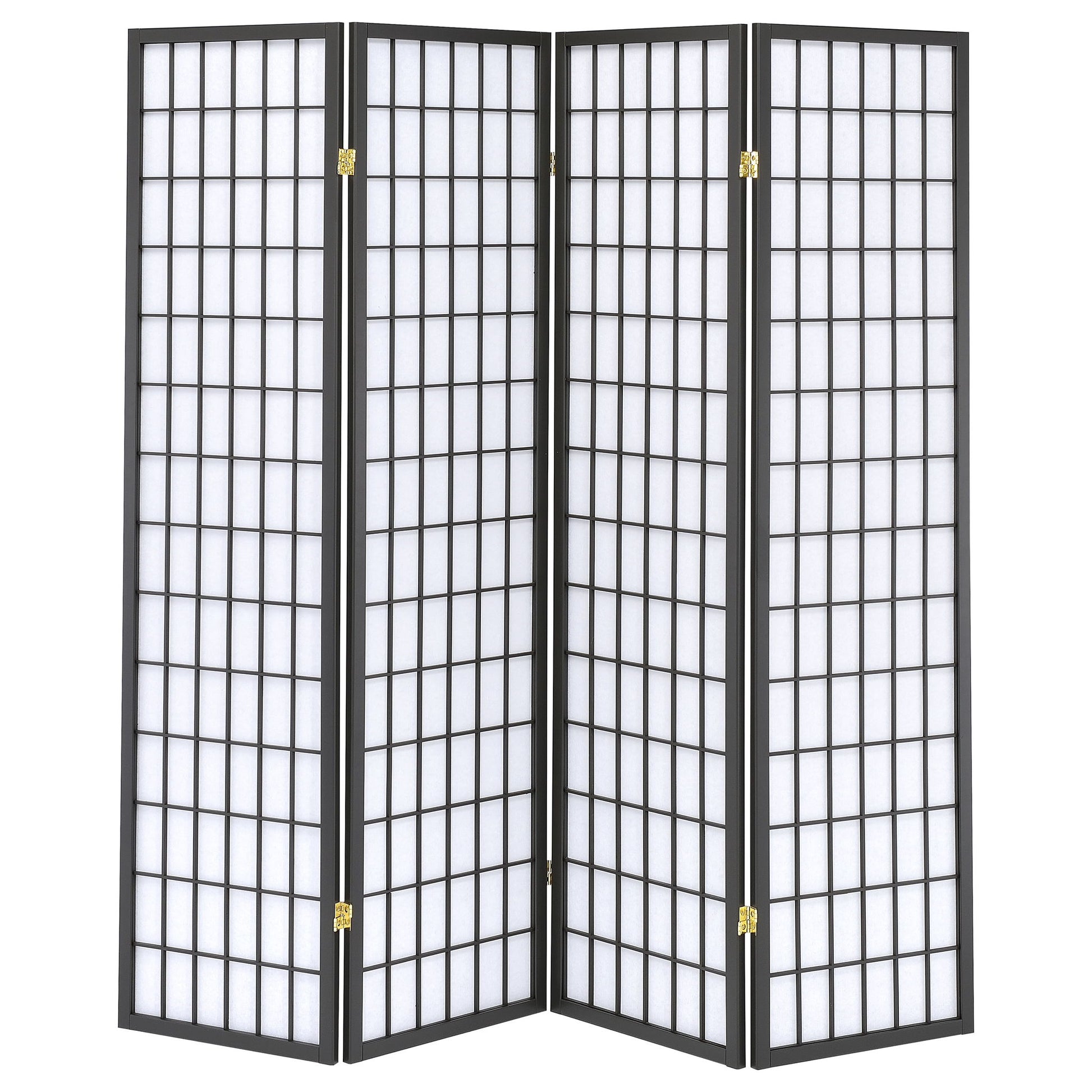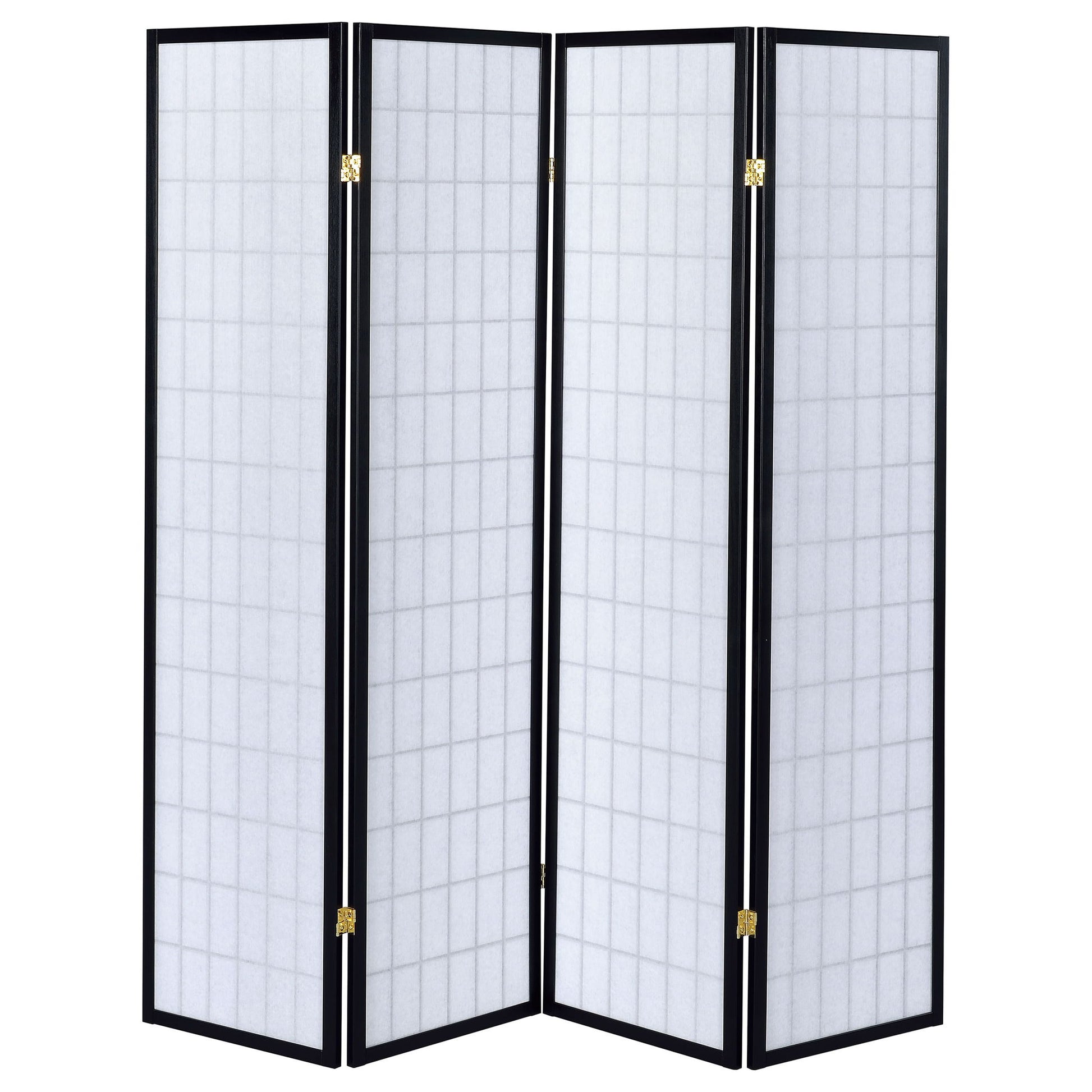Sartre - 4 Panel Divider Folding Shoji Screen With Paper Panels - Black