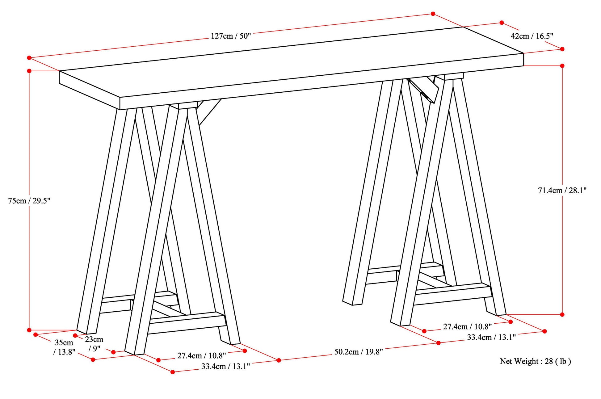 - Features a simple, extra thick table top surface and sturdy sawhorse supports