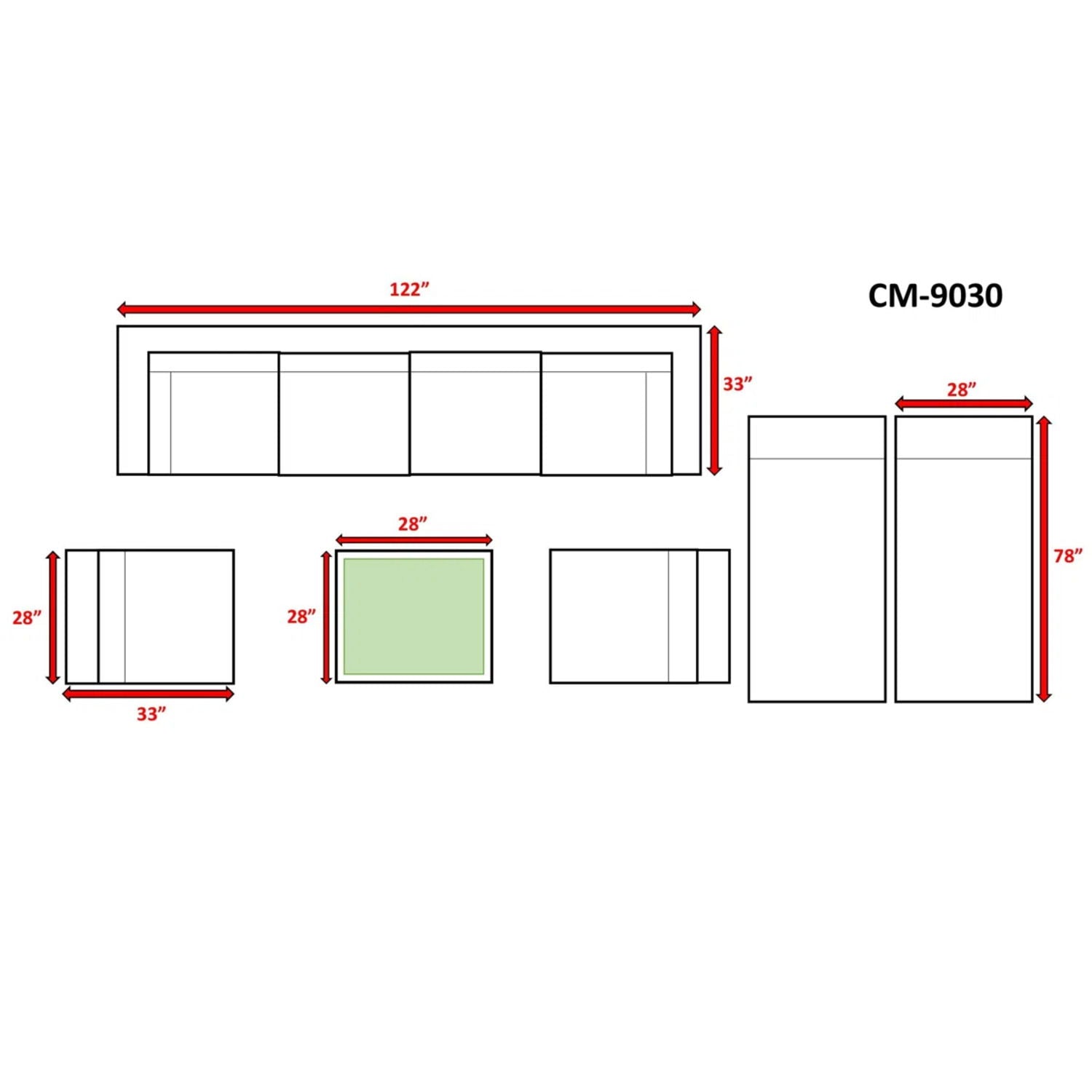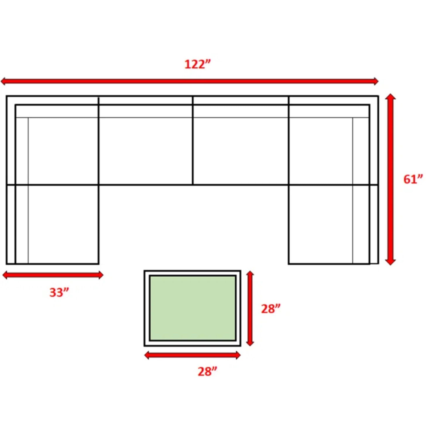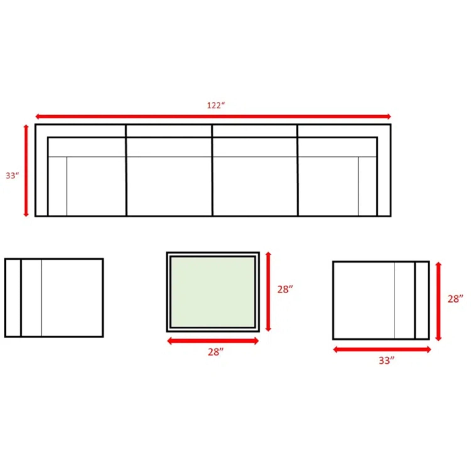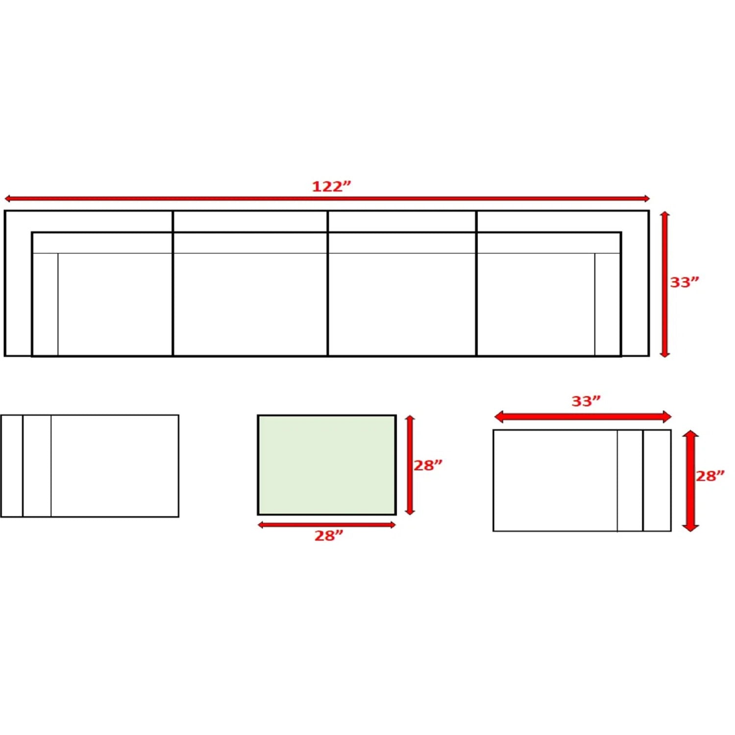 33.0"W x 122.0"D x 26.0"H - 202.0 lb