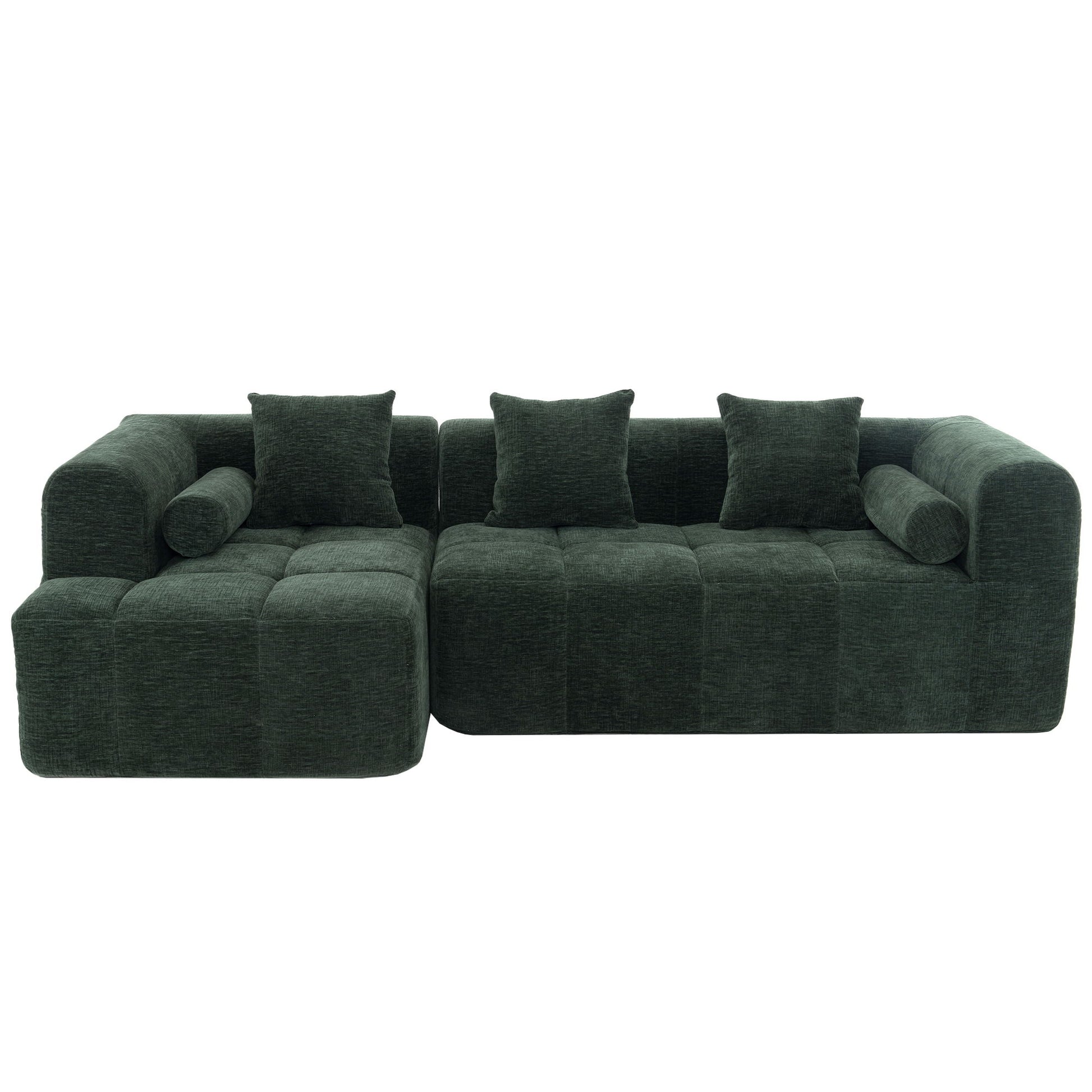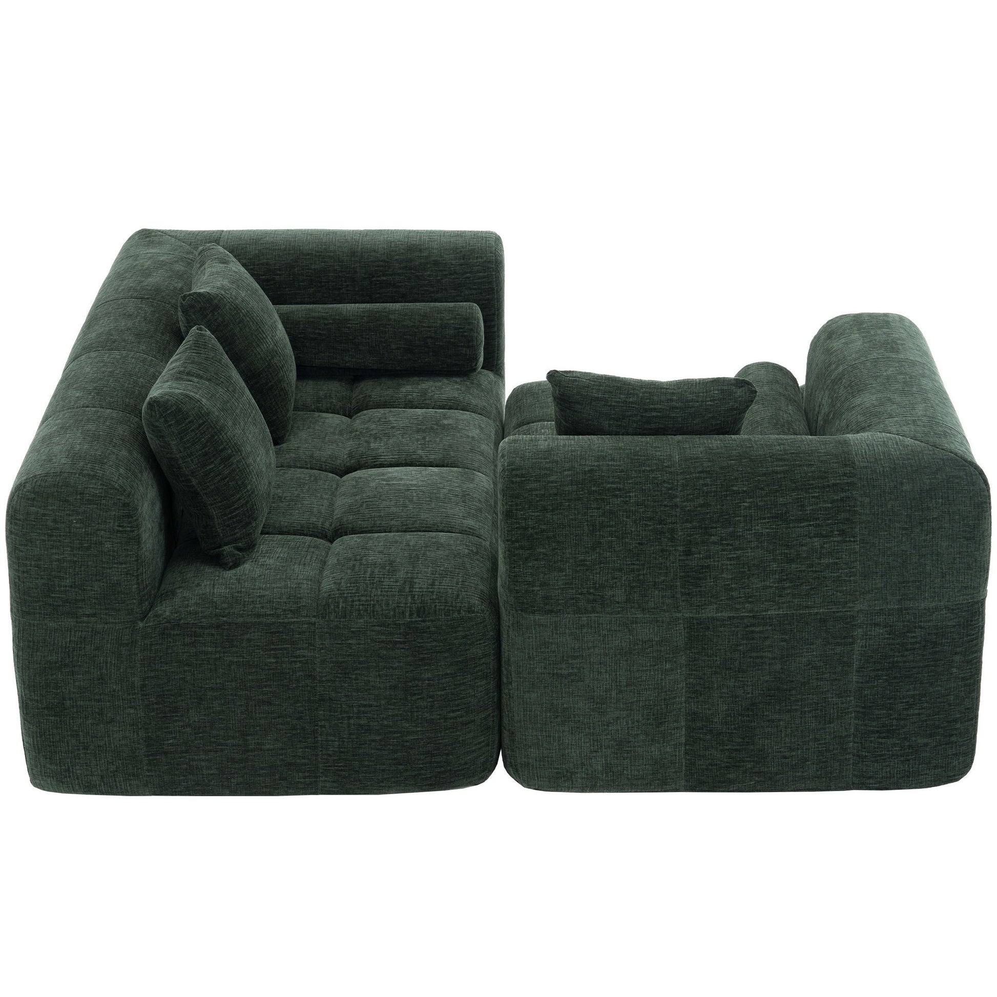 Sectional Sofa Full Compressed Sofa Modular Sofa Couch Free Combined Sofa With Deep Seating And 2 Side Pockets For Living Room - Green