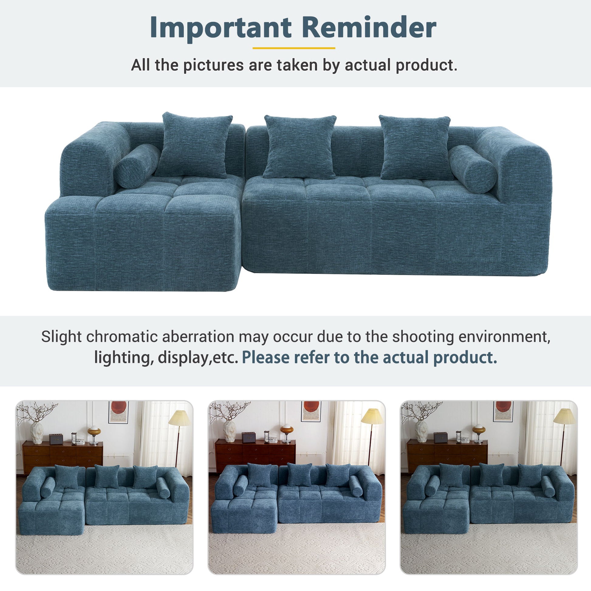 Sectional Sofa Full Compressed Sofa Modular Sofa Couch Free Combined Sofa With Deep Seating And 2 Side Pockets For Living Room - Blue