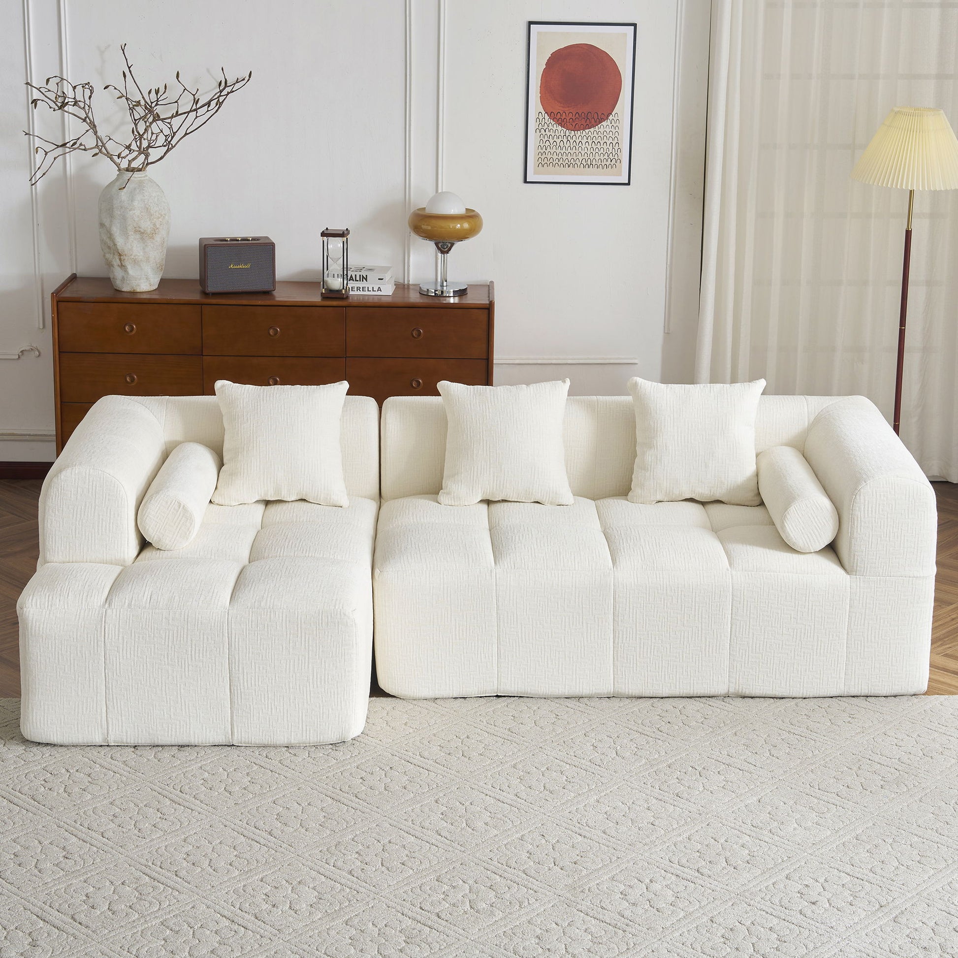 Sectional Sofa Full Compressed Sofa Modular Sofa Couch Free Combined Sofa With Deep Seating And 2 Side Pockets For Living Room - Beige