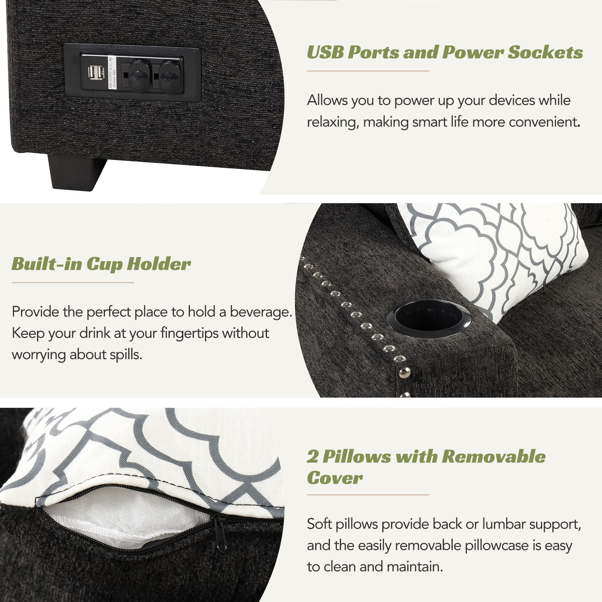 - Charging Convenience: Stay connected with 2 USB ports and 2 power sockets for charging devices without leaving the comfort of your sofa.