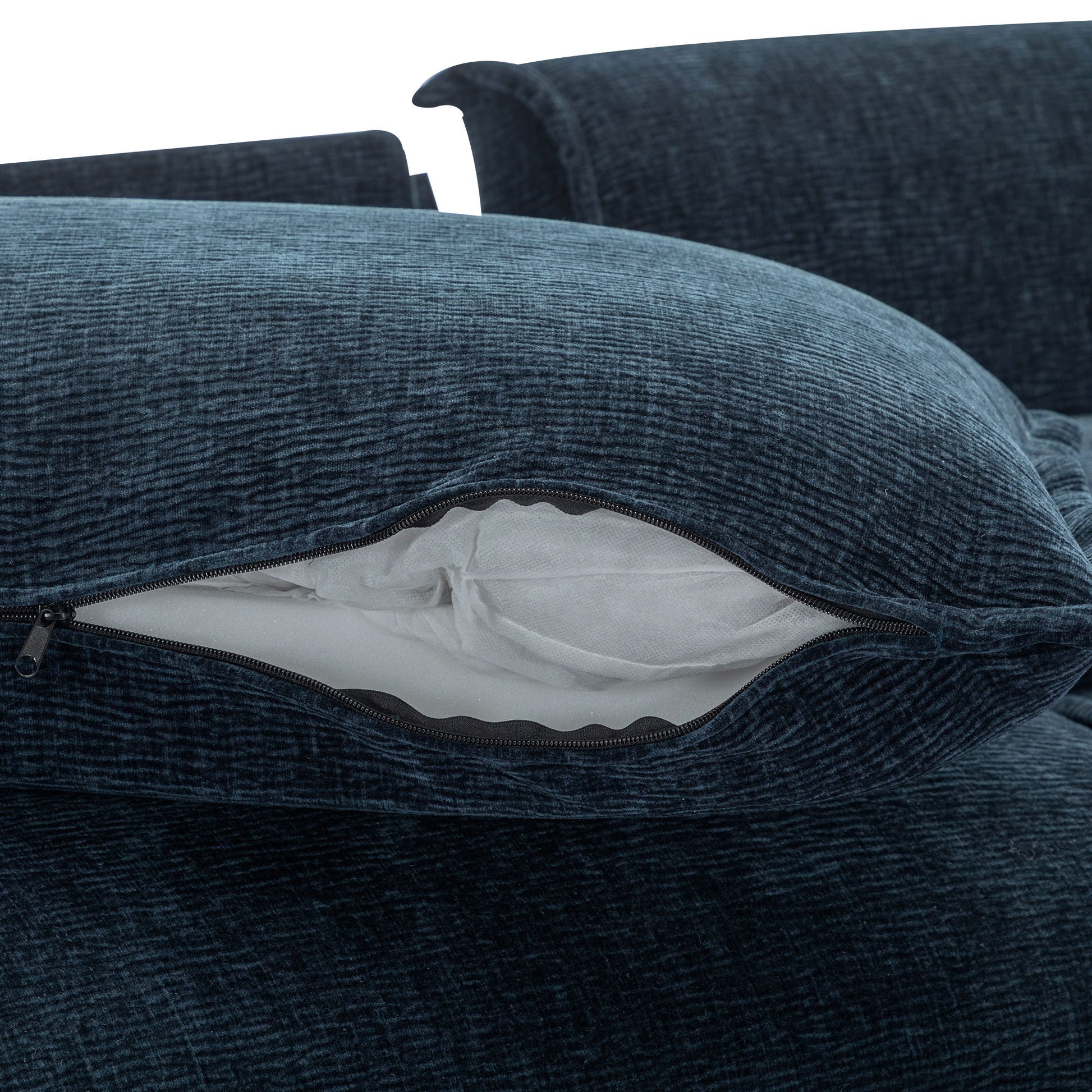 Contemporary Chenille Upholstered Sectional Sofa With Ottomans, USB Ports, Cup Holders & Storage - Blue
