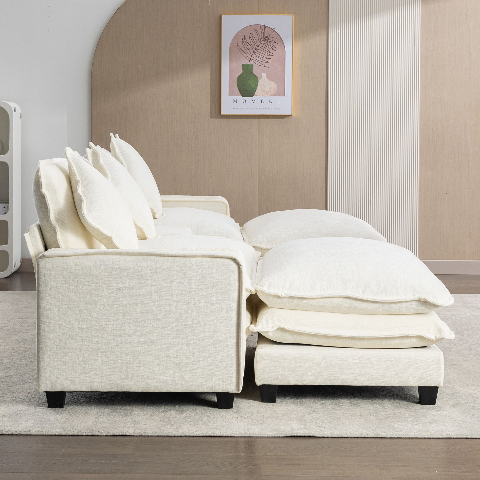 - Customizable Seating with Removable Ottomans: Use the two ottomans for footrests, extra seating, or as chaise lounge extensions for personalized comfort.